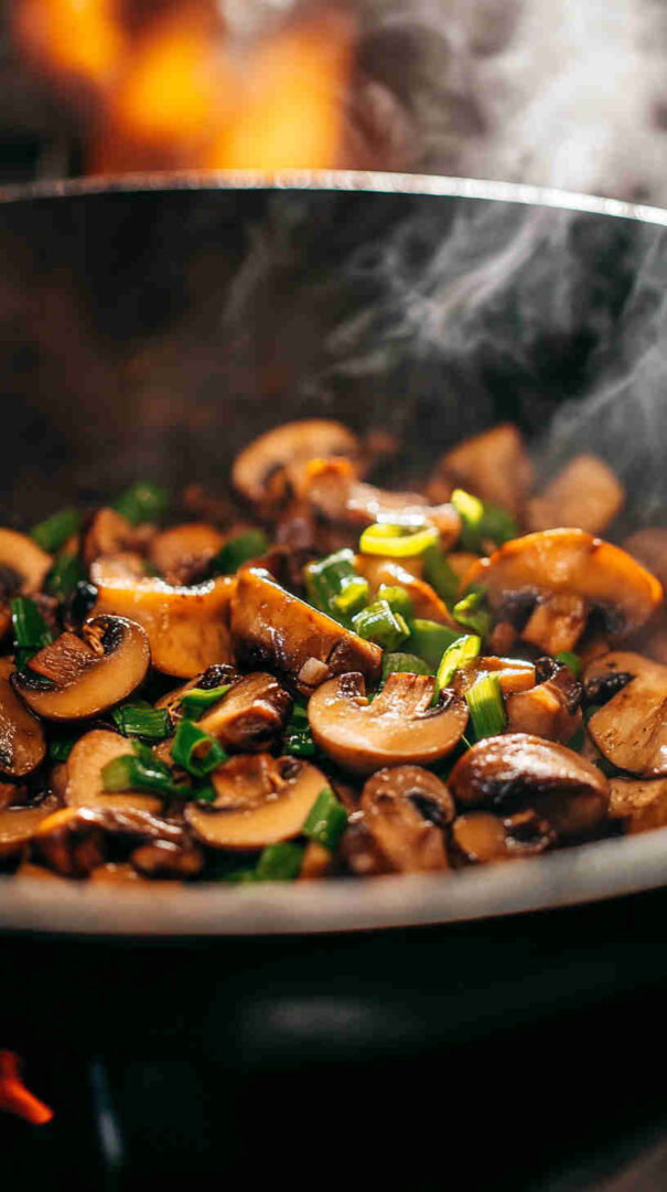 A simple cornstarch slurry creates a light, glossy sauce that clings gently to the mushrooms and scallions. All ingredients are fresh, wholesome, and let the natural flavors of mushrooms and scallions take center stage in an authentic, approachable Chinese style.