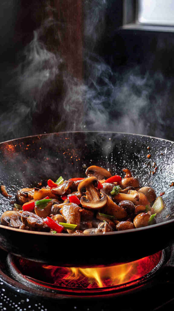 - Sear the mushrooms first — Add the prepared mushrooms to the wok. Stir-fry on high heat for 3–4 minutes until they release their moisture and start to turn golden on the edges.