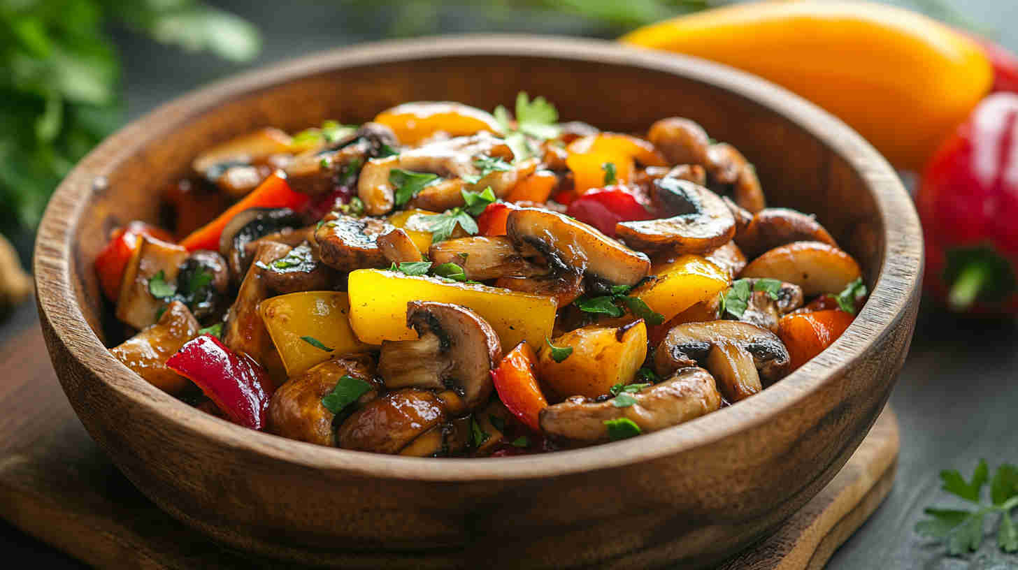 This vibrant Chinese Sweet and Sour Mushroom recipe features tender, meaty mushrooms stir-fried with colorful bell peppers and pineapple in a glossy, tangy-sweet sauce.