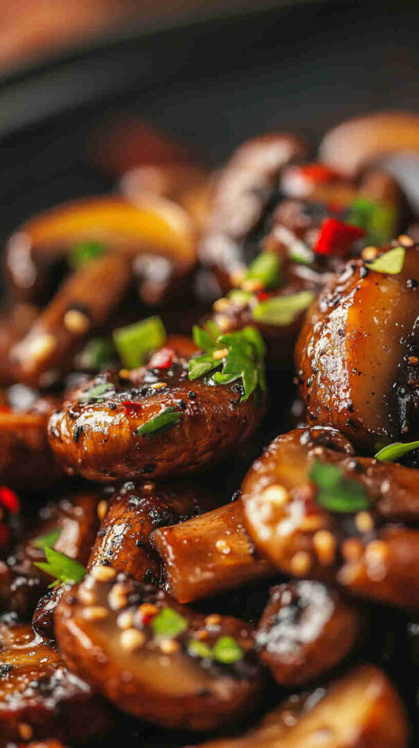 - Thicken to glossy perfection — Give the cornstarch slurry a quick stir, then pour it into the wok while stirring continuously. Cook for 1 minute until the sauce thickens and becomes beautifully glossy, coating every mushroom.