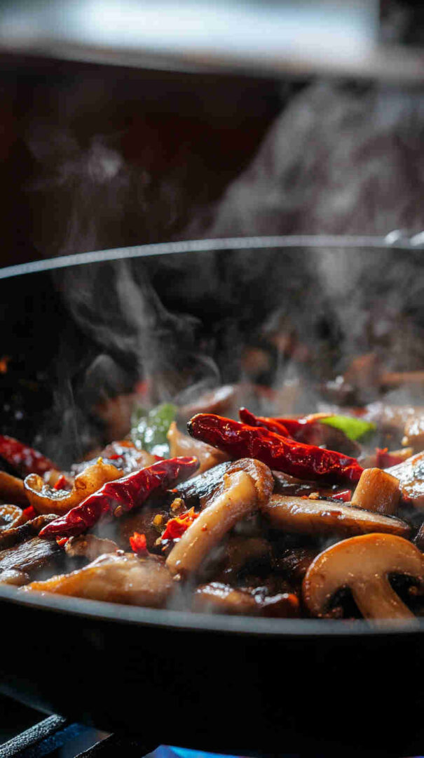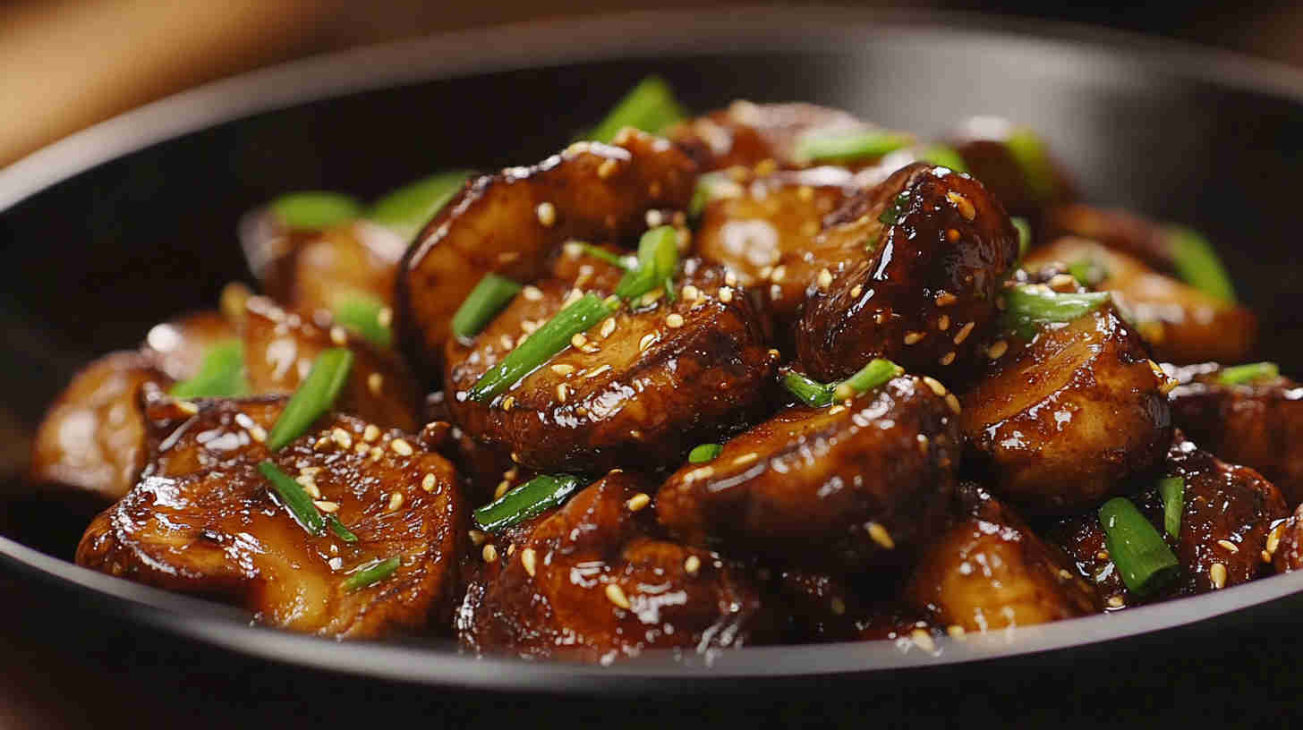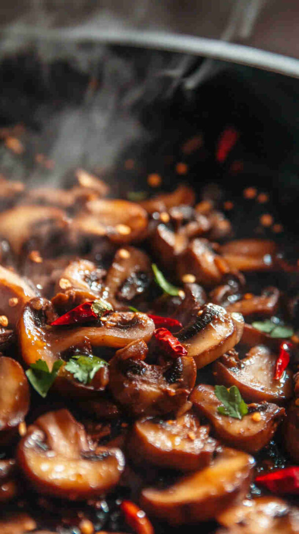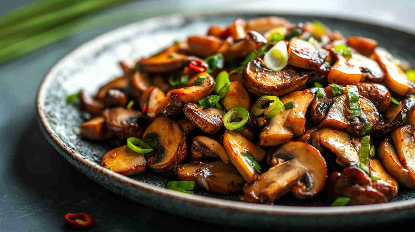 Fiery numbing Szechuan spicy mushrooms—bold Sichuan flavors in a glossy, addictive vegetarian sauce!