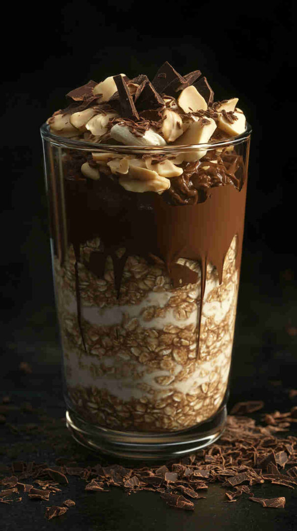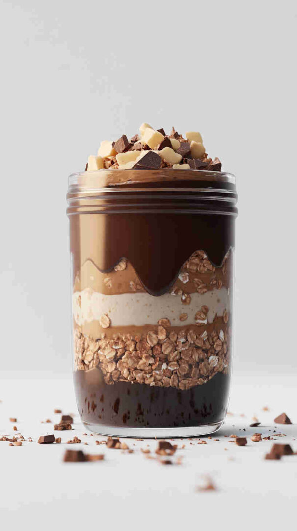 These indulgent Choco-Nut Butter Overnight Oats mix hearty rolled oats with creamy nut butter (peanut or almond), rich cocoa powder, Greek yogurt, milk, chia seeds, and a touch of maple syrup. Mini chocolate chips add melty pockets of joy. Prepared the night before, they become thick, chocolatey, nutty breakfast perfection—no cooking needed.