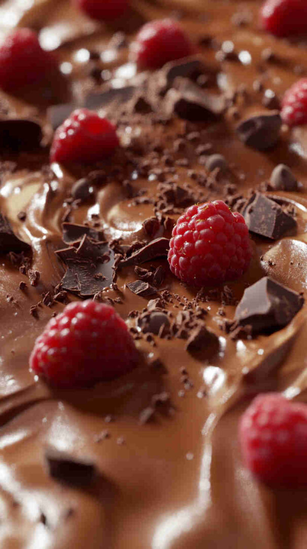 - When ready to serve, add your favorite toppings — fresh raspberries, a swirl of coconut cream, chocolate shavings, or crunchy cacao nibs. Grab a spoon and enjoy the creamiest, dreamiest healthy chocolate dessert ever!