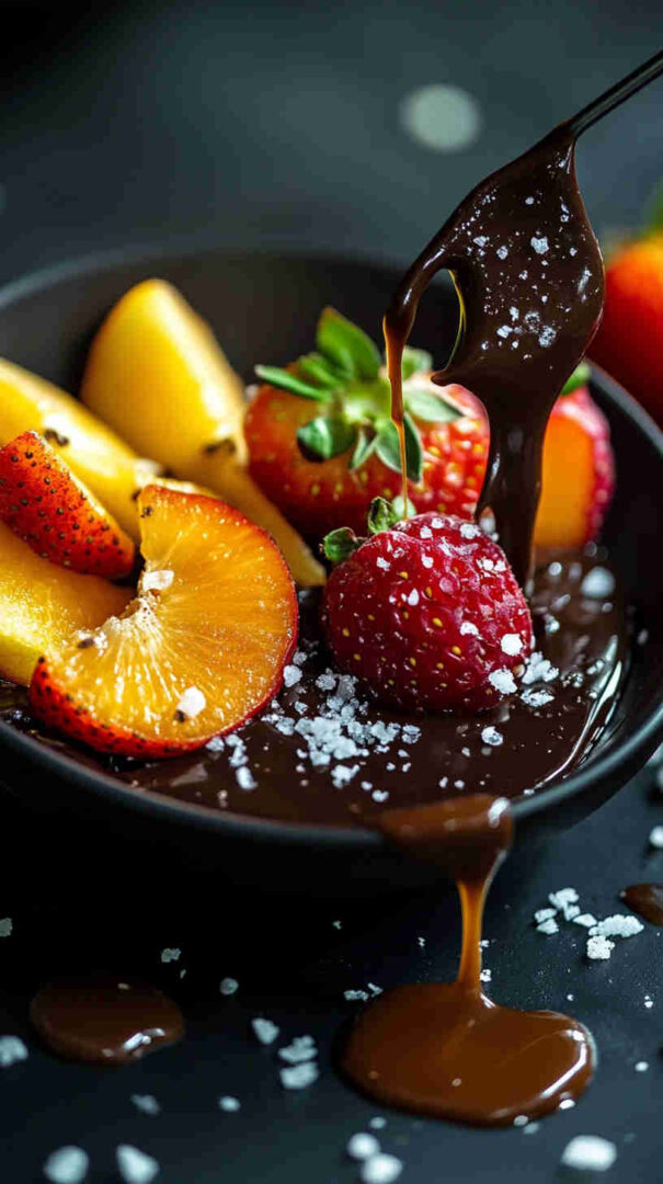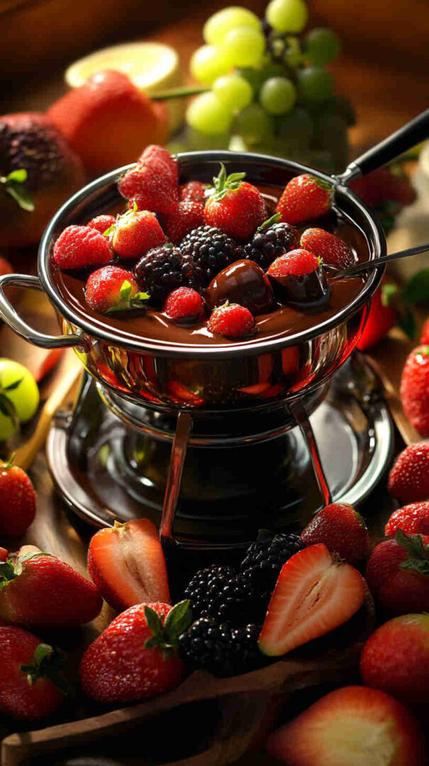 Leftover fondue chocolate can be refrigerated in an airtight container for up to 1 week. Reheat gently in the microwave (stir every 15 seconds) or over a double boiler with a splash of milk to restore smoothness. Fresh fruit is best enjoyed the same day; store any extras separately in the fridge. Do not freeze the fondue, as it may separate or become grainy upon thawing.
