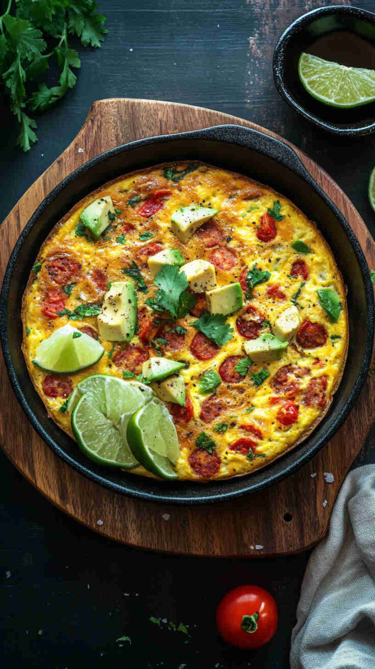 This frittata is a nutritious, flavorful dinner option that transforms spicy chorizo and creamy avocado in a fluffy egg base into a delightful treat, perfect for a healthy meal. Easy to prepare, it’s packed with protein, healthy fats, and taste. Versatile—serve with salad or alone—this recipe offers a wholesome, satisfying indulgence.