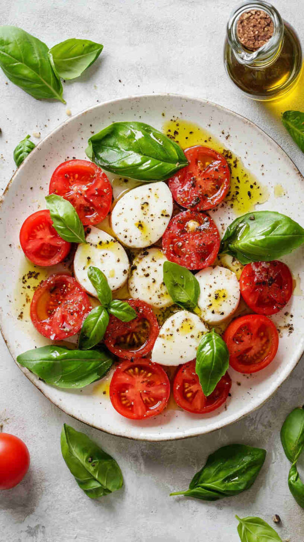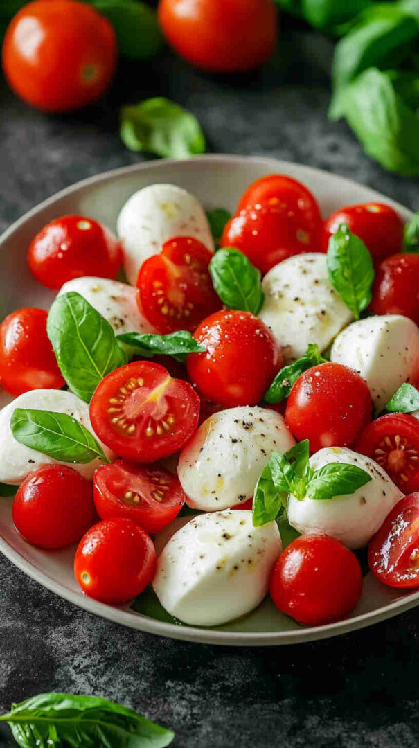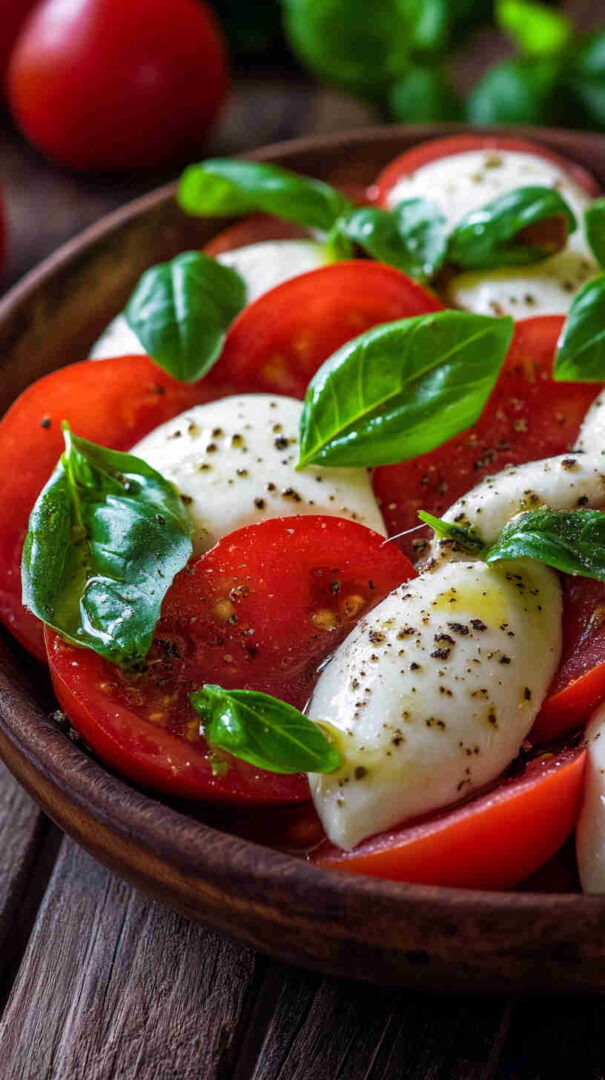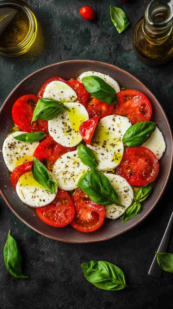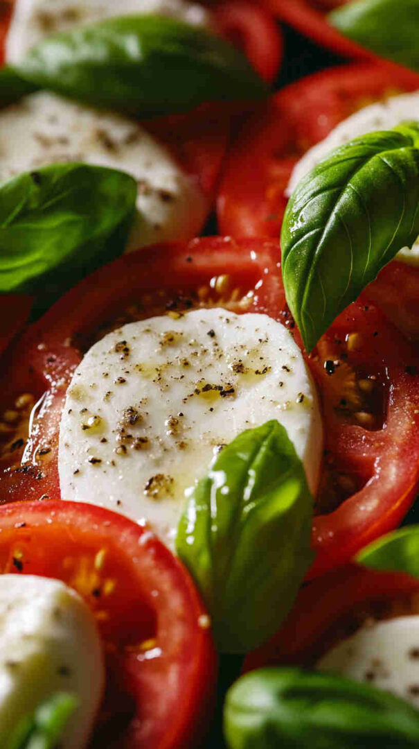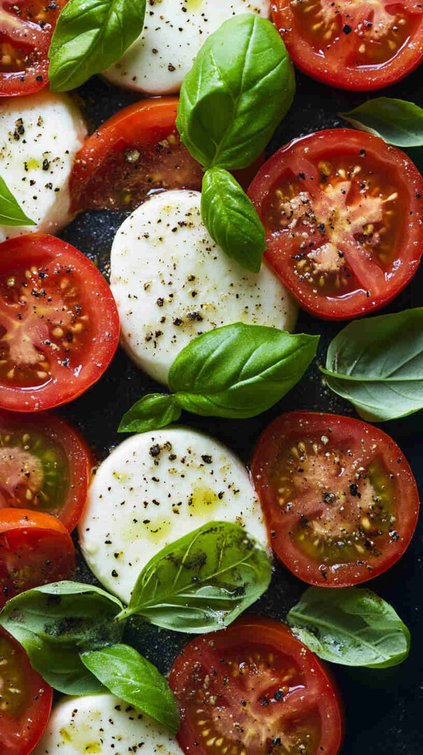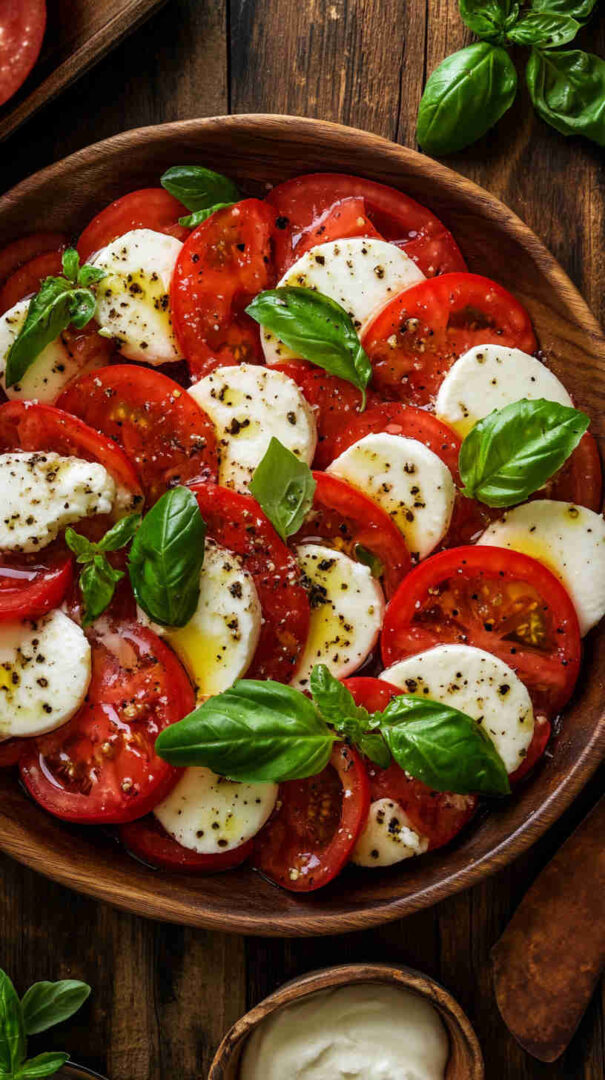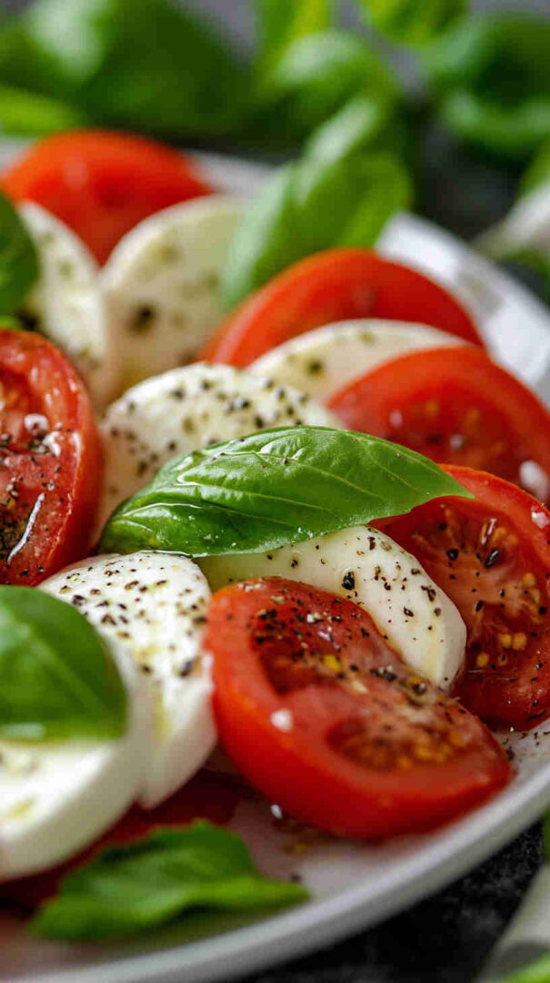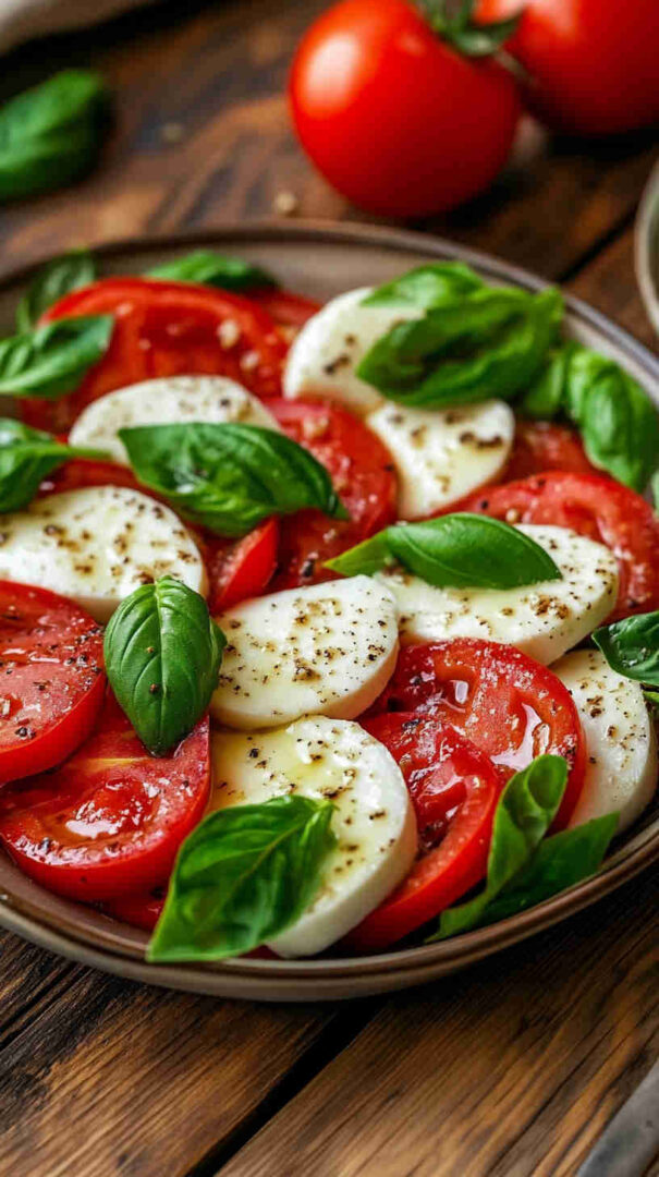 Fresh tomatoes, creamy mozzarella, and basil drizzled with olive oil—simple, elegant Italian classic bursting with summer flavors.