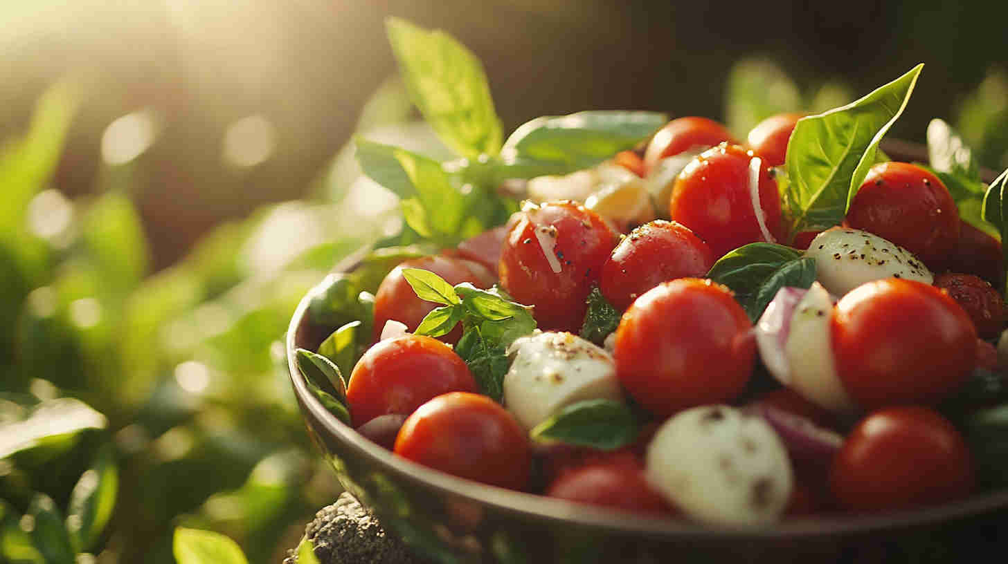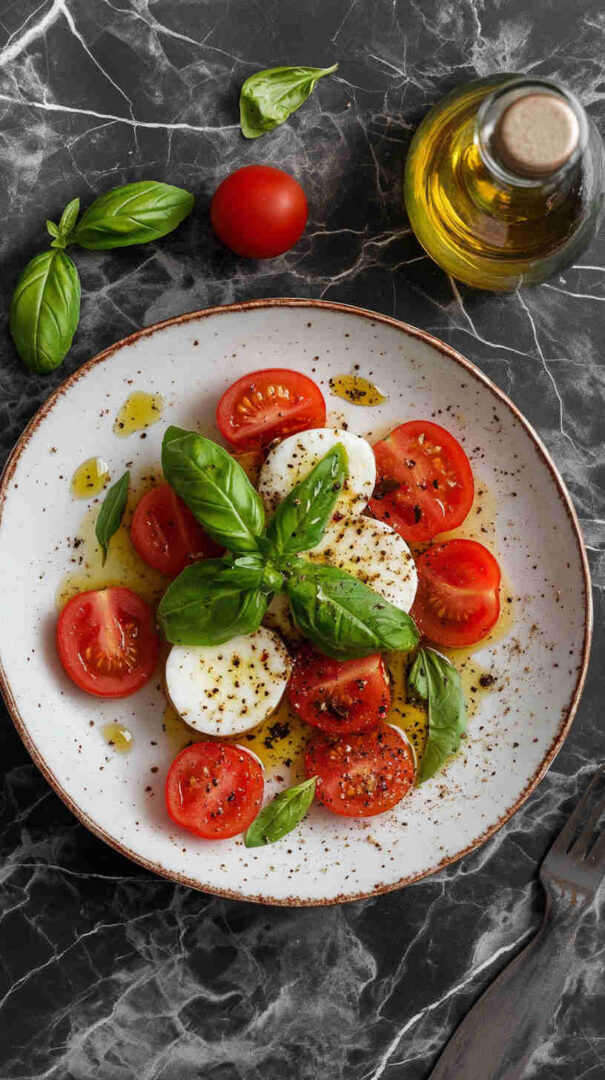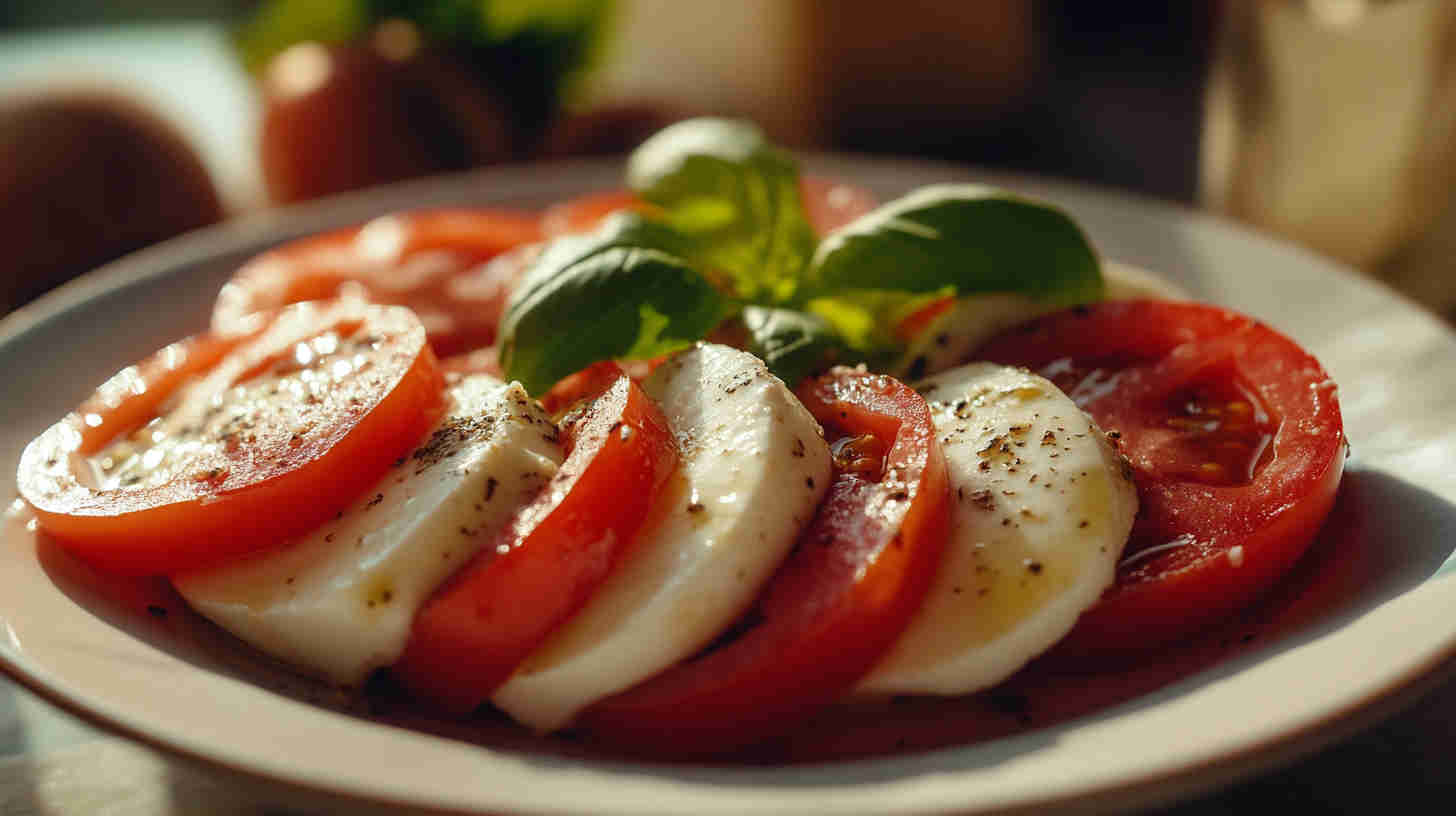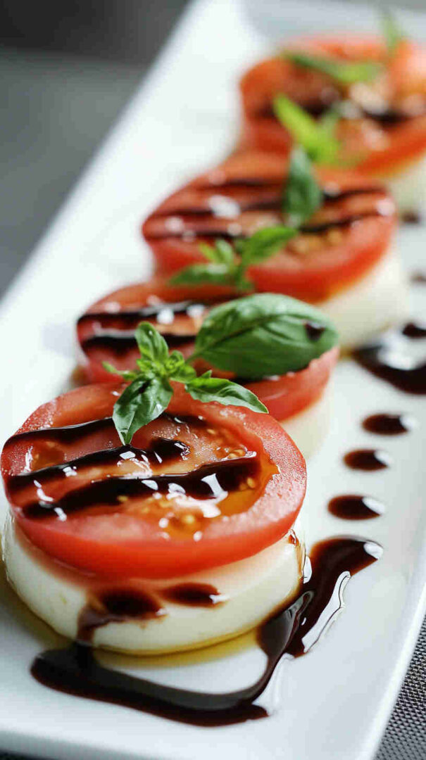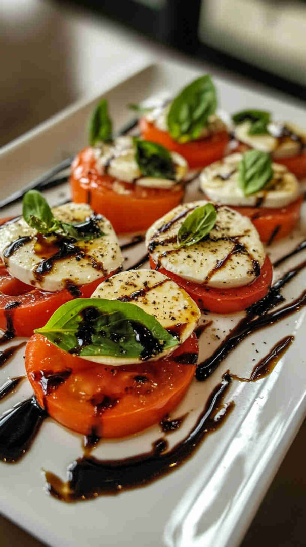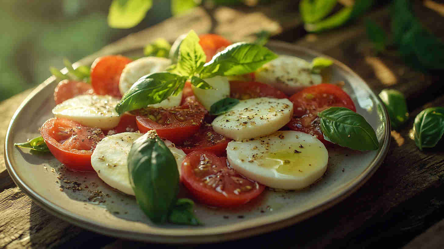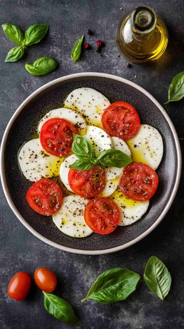 Fresh tomatoes, creamy mozzarella, and basil drizzled with olive oil—simple, elegant Italian classic bursting with summer flavors.