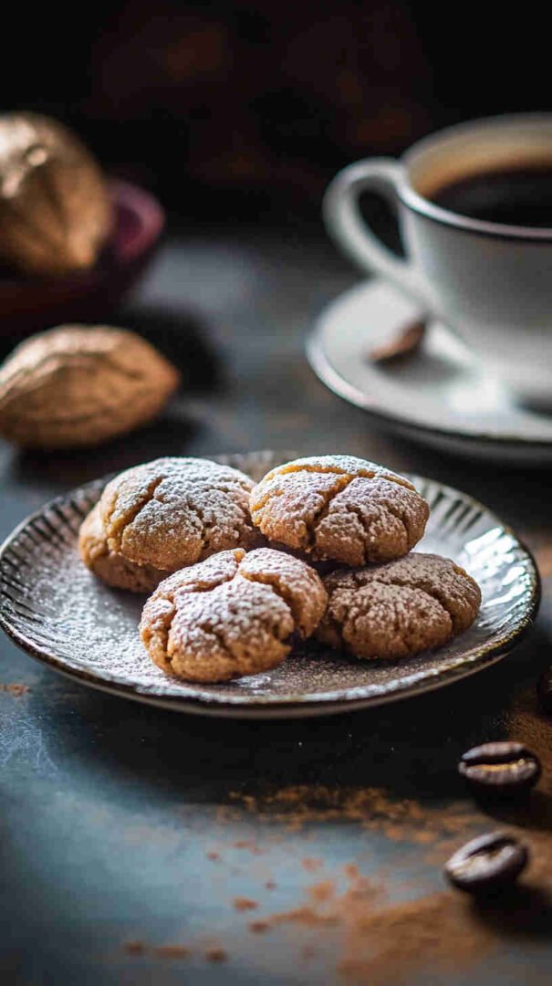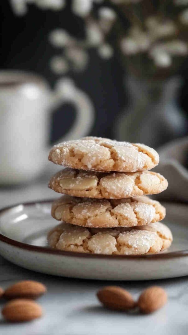These classic Italian Amaretti cookies (Amaretti Morbidi) feature a delightfully crisp, crackly exterior dusted in powdered sugar, giving way to a soft, chewy, almost marzipan-like center bursting with intense almond flavor. Naturally gluten-free and dairy-free, they’re an elegant, traditional Italian treat perfect for holidays, coffee breaks, or gifting.