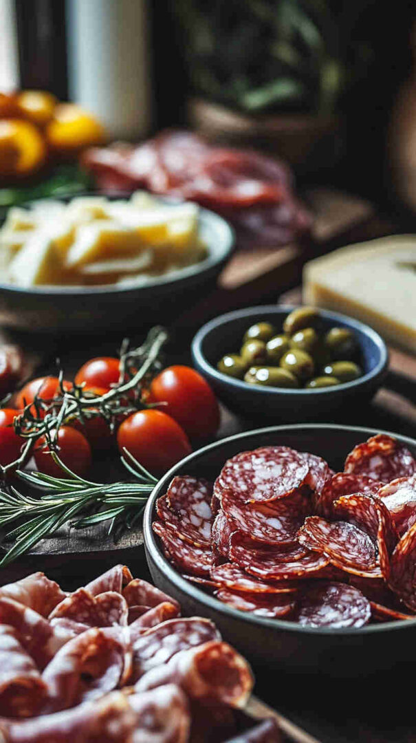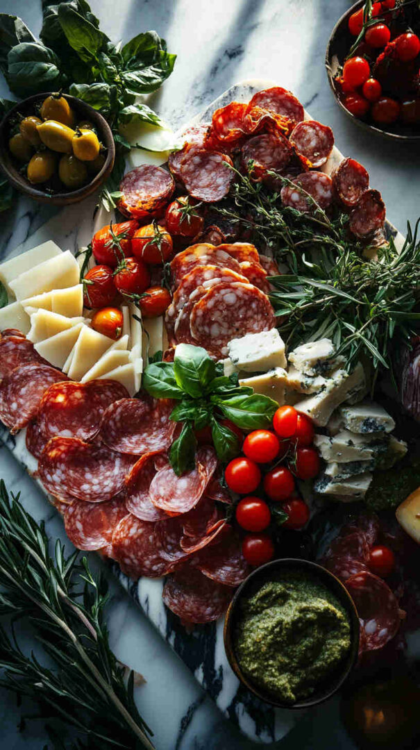 No-cook Italian starter with cured meats, cheeses, marinated veggies, and olives for easy entertaining and bold flavor.