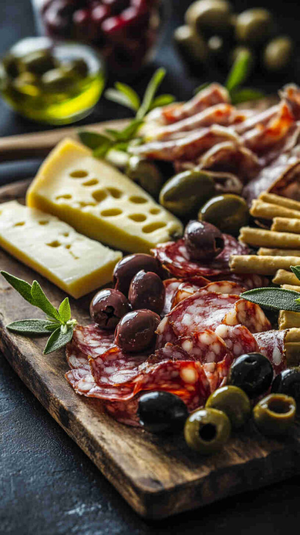 Marinated vegetables are key for acidity. Jarred artichoke hearts, roasted red peppers, and pepperoncini work beautifully, but pat them dry so they don’t water down other ingredients. Buy good olives with pits removed for convenience, like Castelvetrano for buttery flavor and Kalamata for brininess.