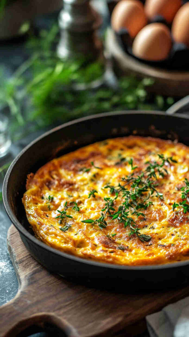 For extra fluff, separate eggs, whip whites to soft peaks, then fold in. Use medium-low heat when cooking the egg base to avoid rubbery edges. Finish under the broiler for 1–2 minutes if you love a deeply golden top.