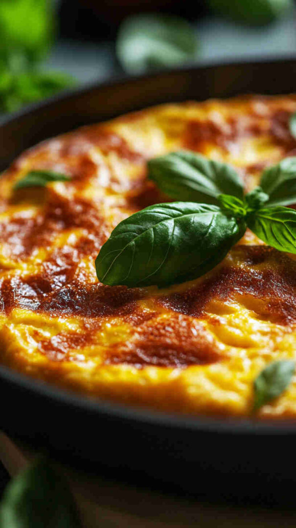 - Remove from oven, let rest 5–10 minutes (it will continue to set), garnish with extra fresh basil, slice into wedges, and serve warm—enjoy this gorgeous, fluffy Italian classic!