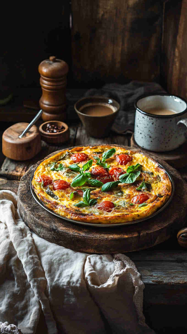 Fluffy Italian frittata with veggies, mozzarella, and fresh basil—perfect brunch centerpiece, easy and delicious!