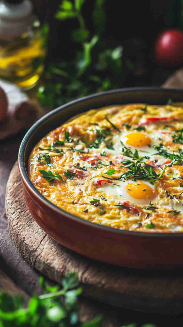 It’s incredibly forgiving—use whatever vegetables you have on hand—and turns them into something special with minimal effort. The eggs become custardy and light thanks to a touch of milk or cream, while the cheese melts into luscious pockets and the fresh herbs add that unmistakable Italian perfume.