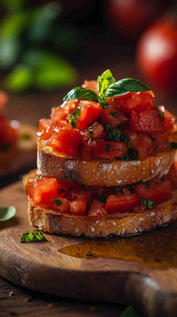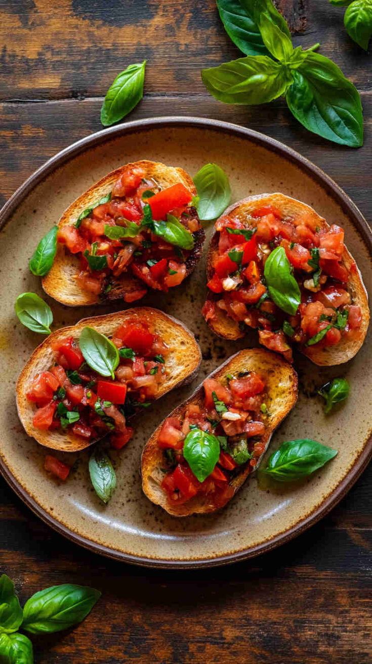 You’ll fall head over heels for this classic because it’s incredibly straightforward yet delivers restaurant-quality results with minimal effort. The magic lies in the contrast: crispy, garlicky toasted bread meets cool, juicy tomato topping bursting with sweetness, acidity, and herbal freshness from basil.