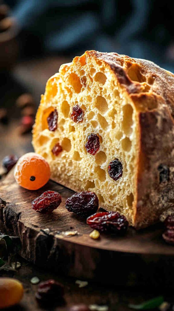The classic version shines with raisins and candied orange peel, but you can personalize it easily. Replace half the raisins with dried cranberries, chopped dried apricots, or cherries for a tangy twist. Add ½ cup toasted almonds, hazelnuts, or pistachios for crunch and nutty depth (traditional in some northern Italian versions).