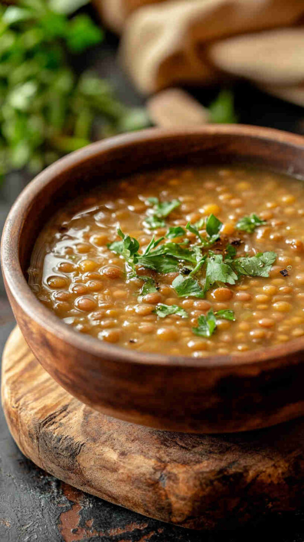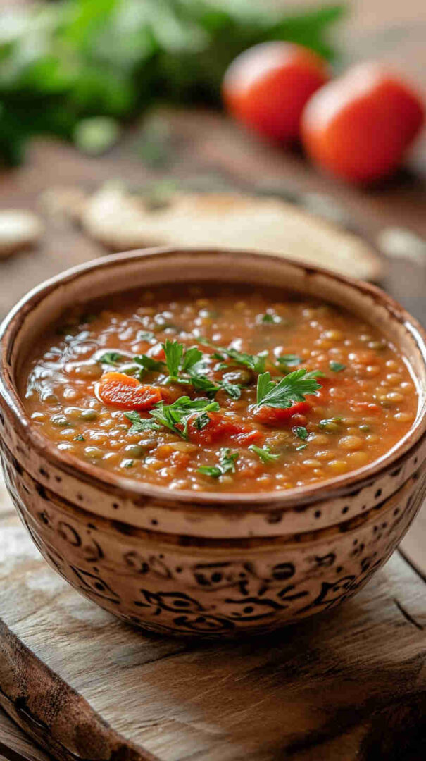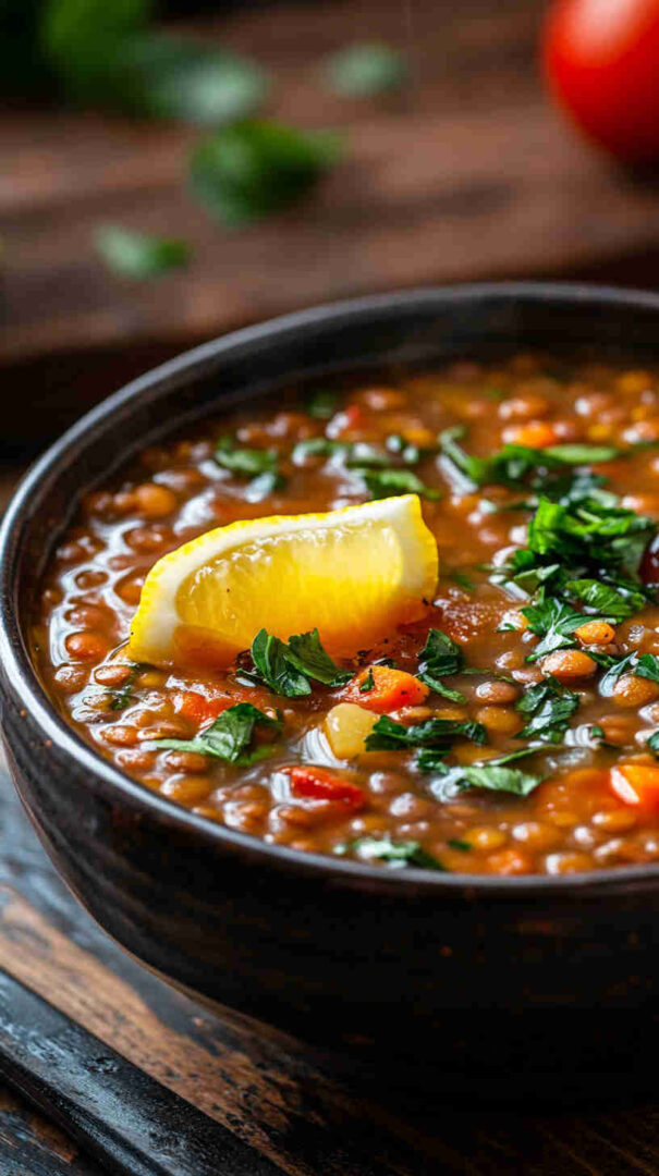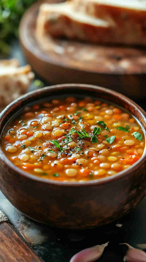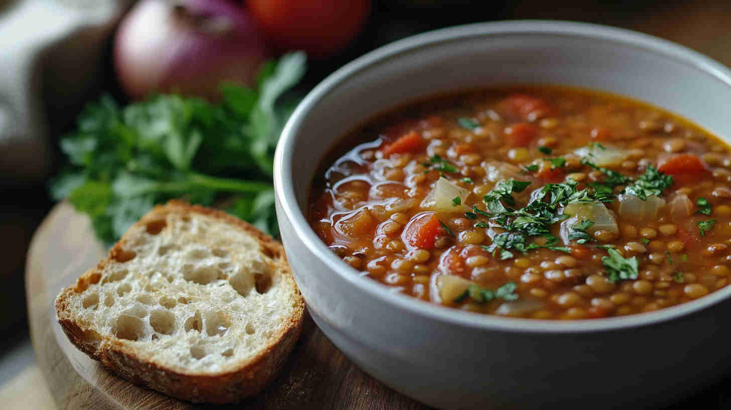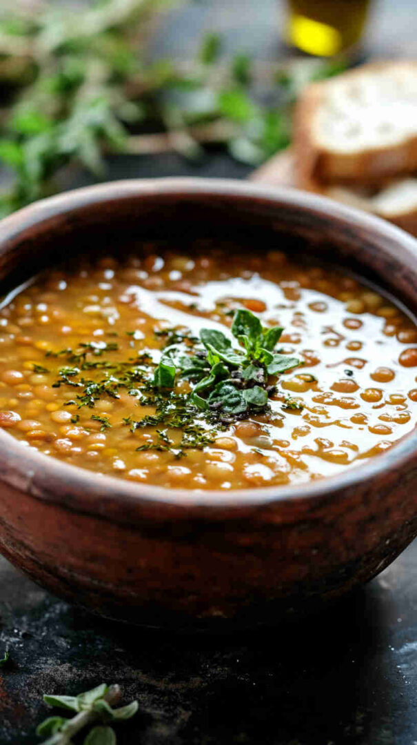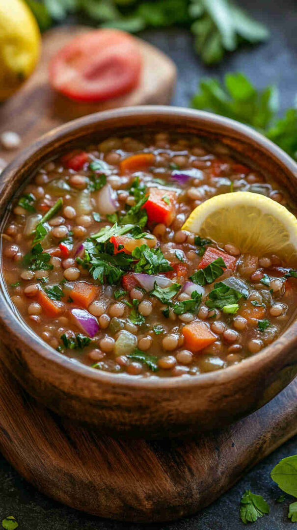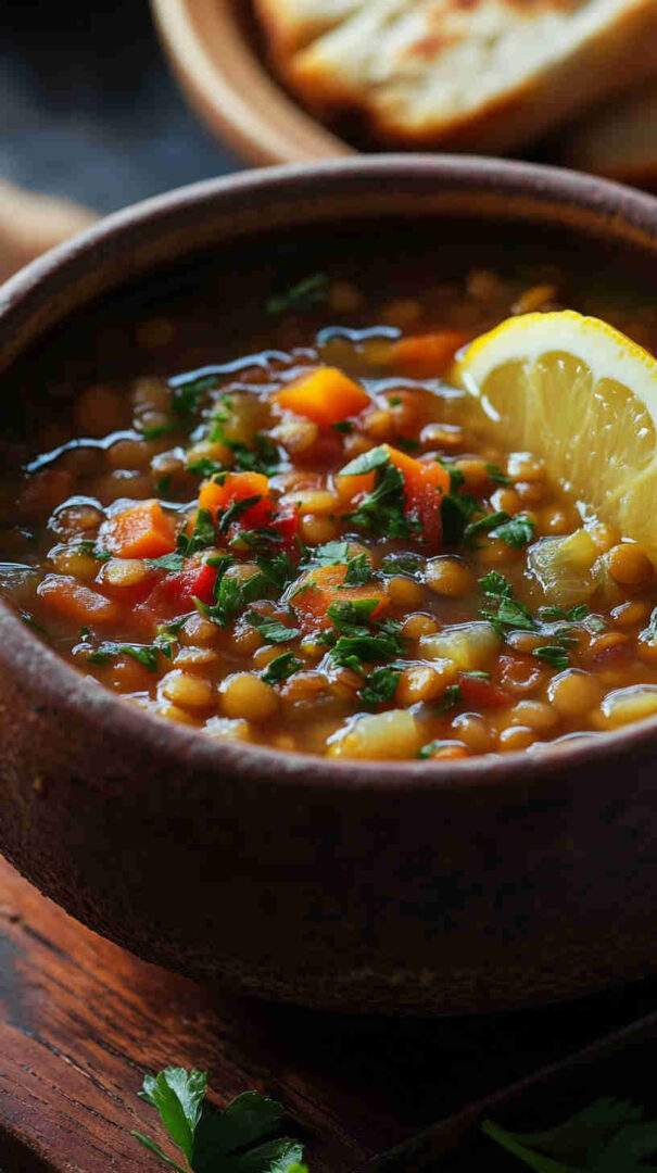 Hearty, flavorful Mediterranean lentil soup with vegetables, olive oil, and bright lemon—wholesome comfort in every bowl.