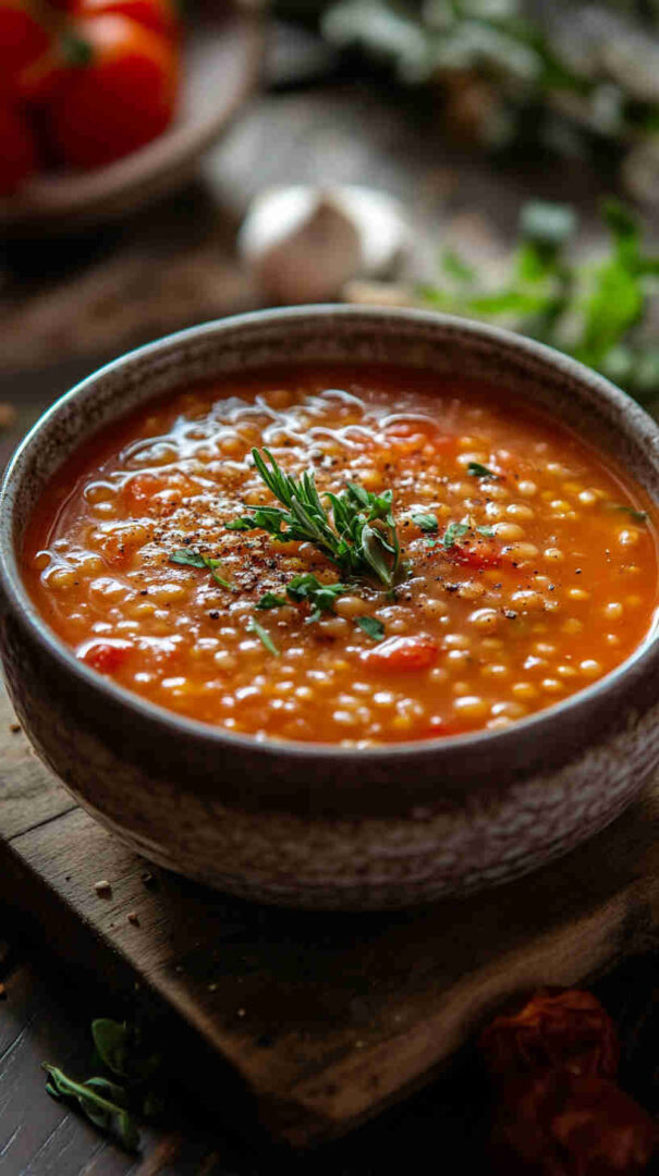 Warm spices such as cumin, oregano, and a bay leaf infuse the broth with fragrant, savory notes reminiscent of sunny Mediterranean kitchens. Vegetable broth (or water with good stock cubes) keeps it light yet flavorful, while a final touch of lemon juice or red wine vinegar adds brightness that ties everything together.