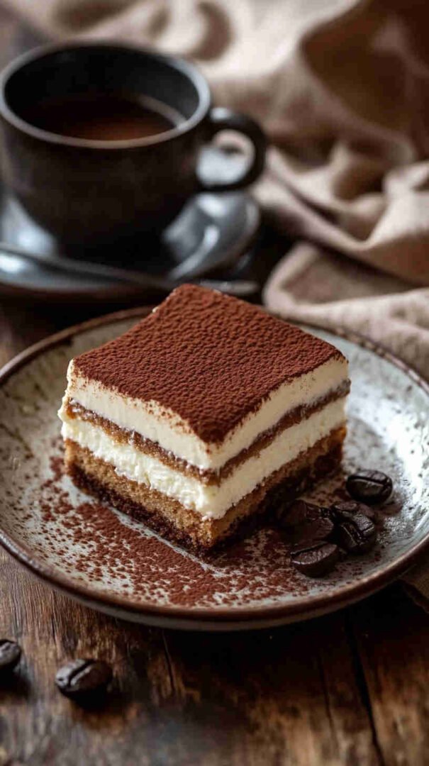 Creamy mascarpone layers with coffee-soaked ladyfingers and cocoa dusting — classic Italian tiramisu perfection!