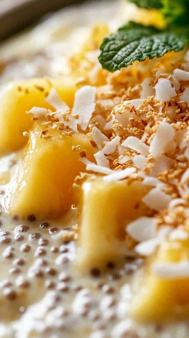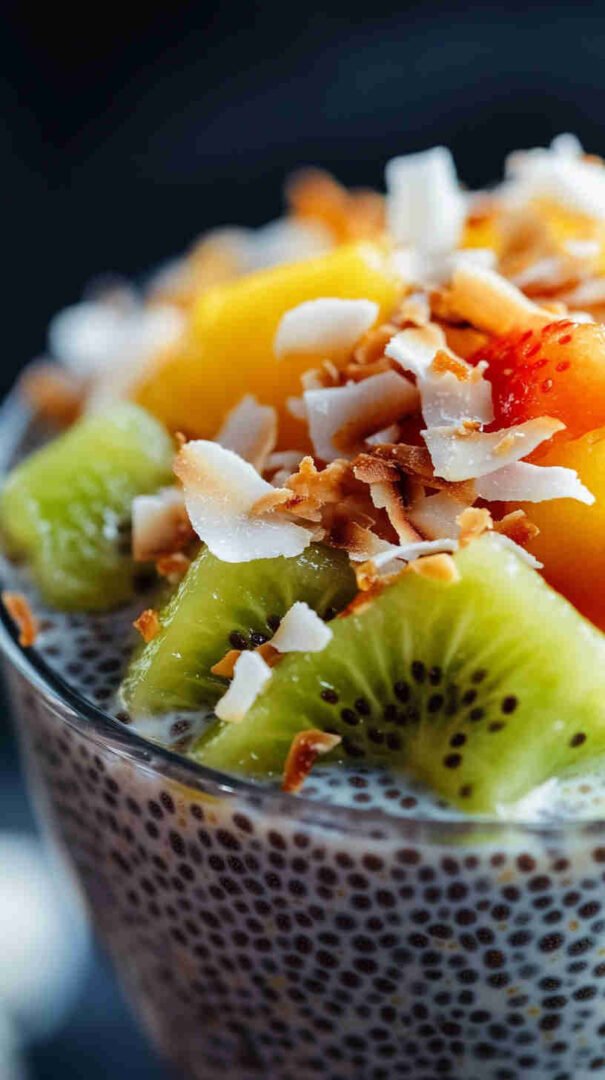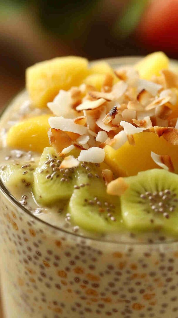 Chia seeds are the star here—they absorb liquid and create that signature pudding texture while providing a massive boost of fiber (for digestion and satiety), omega-3 fatty acids (anti-inflammatory), and complete plant protein. Coconut milk (preferably full-fat canned for creaminess, or light for fewer calories) adds tropical richness, healthy medium-chain triglycerides for energy, and a dairy-free base.