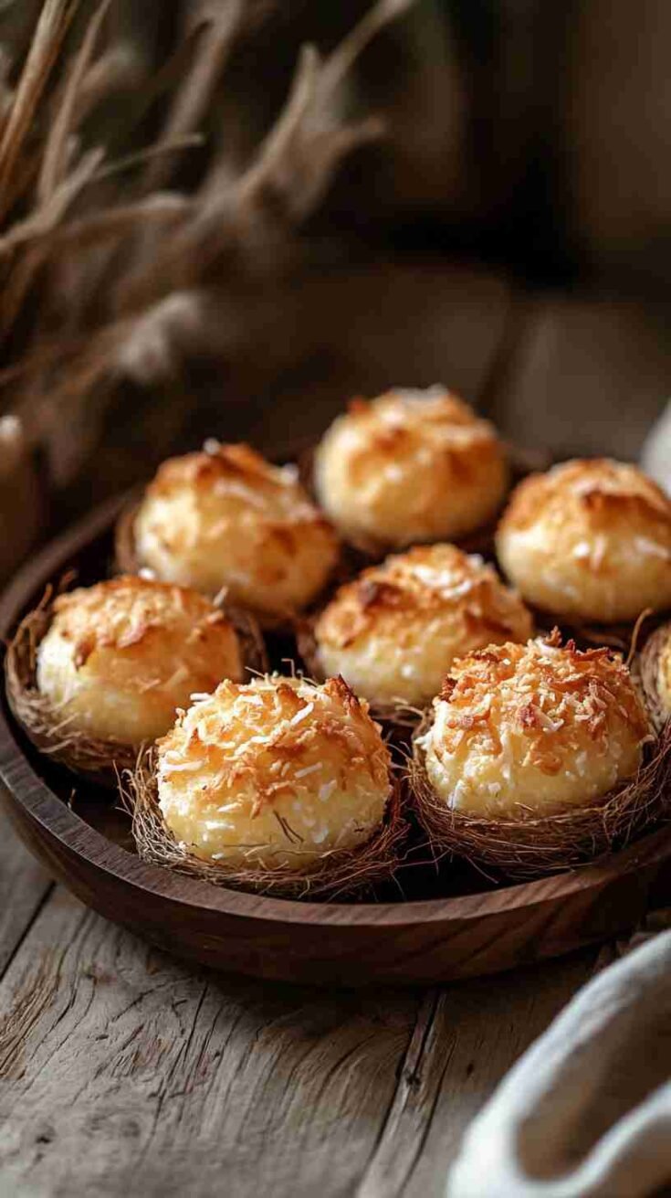These Coconut Macaroon Nests are wedding dessert bar royalty: only 5 ingredients, naturally gluten-free, and they look like they came from a high-end bakery. The toasted coconut gives gorgeous golden edges, the centers stay perfectly chewy, and the chocolate “nest” with tiny eggs or berries is pure Instagram magic. Bake them days ahead, fill at the last minute, and watch guests lose their minds over how adorable and delicious they are — this is the effortless showstopper every bride needs!