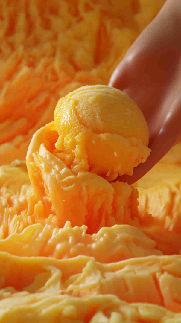 - Freeze for 4–6 hours (or overnight). When ready to serve, let it sit out 5–10 minutes, scoop into pretty bowls, and enjoy your sunny homemade sorbet!