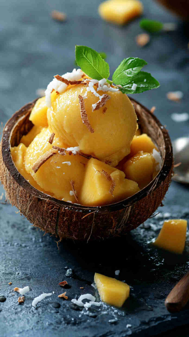 This refreshing Coconut Mango Sorbet combines the tropical sweetness of ripe mangoes with creamy coconut milk for a naturally dairy-free, vegan frozen dessert. With just a handful of simple ingredients and no ice cream maker required, it delivers bright, fruity flavor and a smooth, scoopable texture—perfect for hot days or as a light, guilt-free treat.