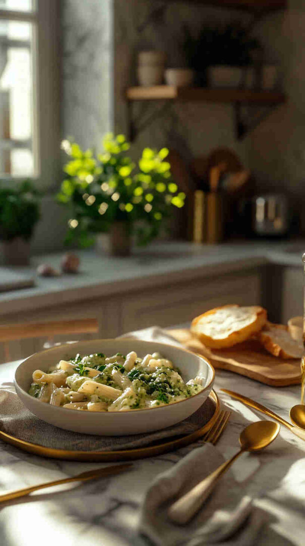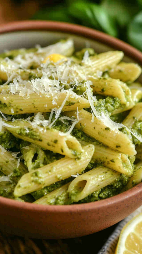 Tossed with al dente penne, it delivers bright, herby flavor with creamy richness and a touch of nutty parmesan—light yet satisfying, perfect for quick weeknight dinners or impressing guests.
