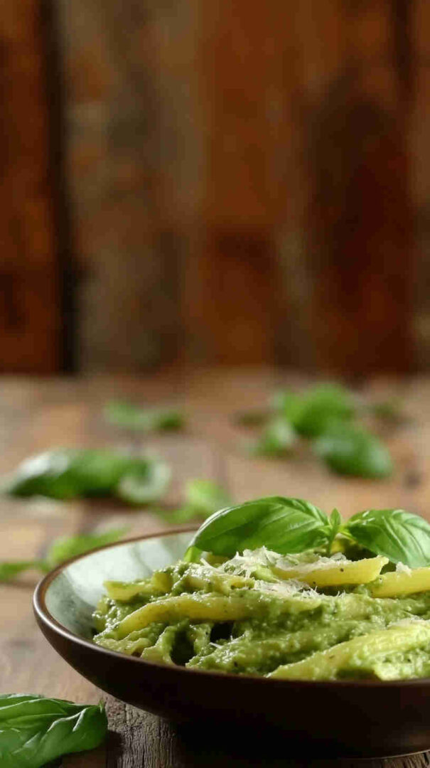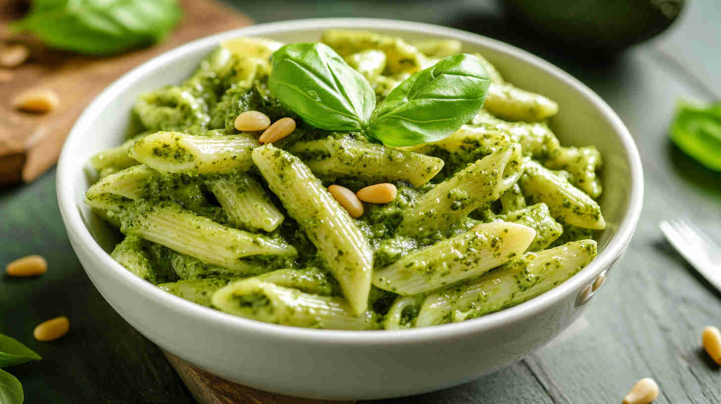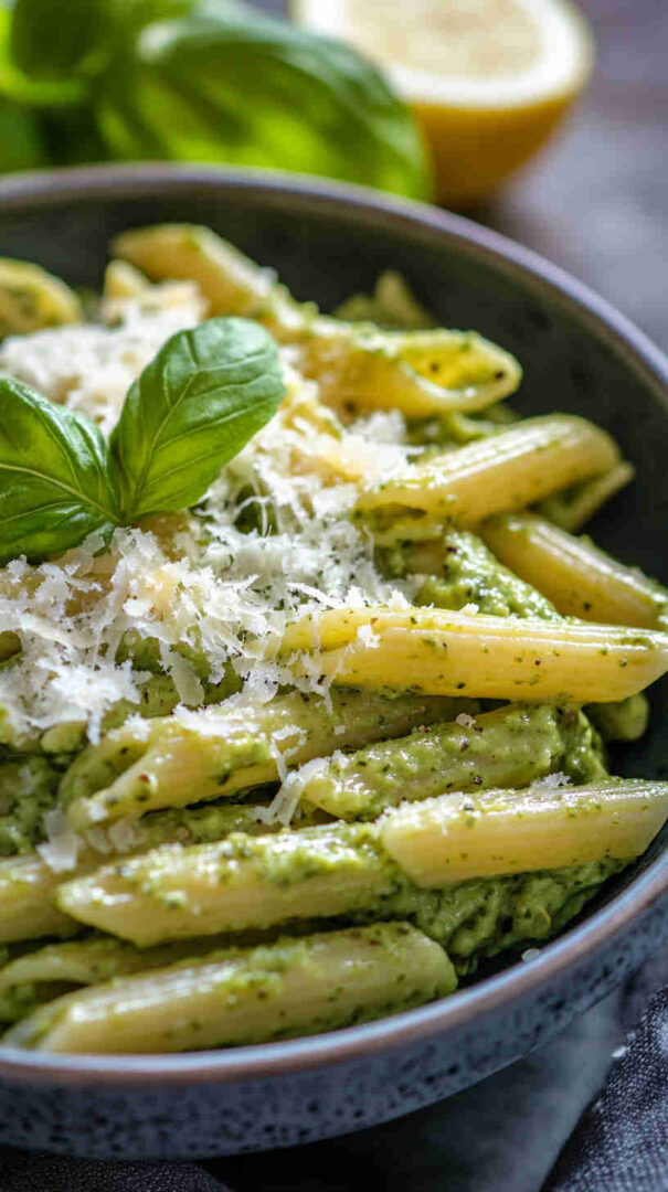Creamy avocado pesto penne—fresh, bright, and irresistibly silky.