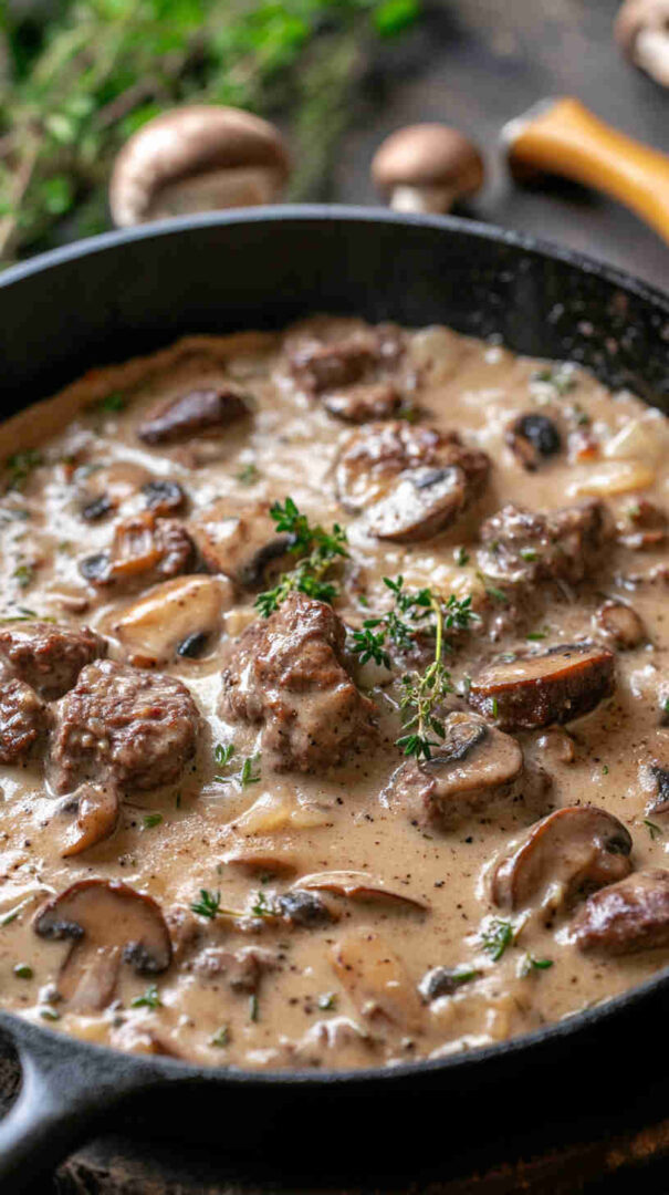You’ll adore this dish because it’s ultimate comfort food without the fuss—think tender, flavorful beef and meaty mushrooms swimming in a silky, garlic-packed cream sauce that’s rich but not overly heavy.