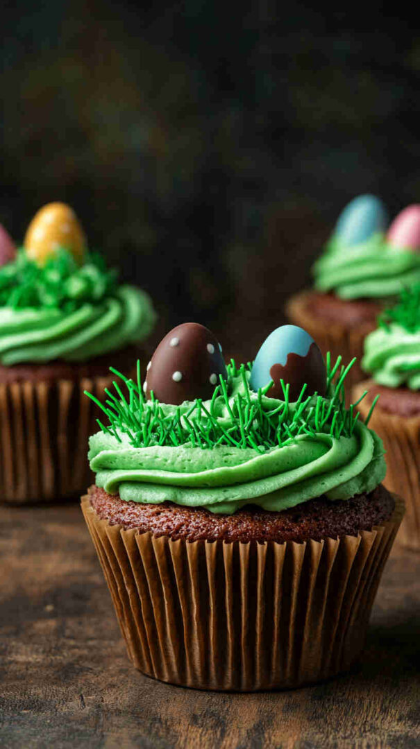 Use room-temperature ingredients for smoother batter and better rise. Don’t overmix the batter to keep cupcakes tender. For vibrant green grass, start with a little gel food coloring and add more gradually—too much can make it neon!