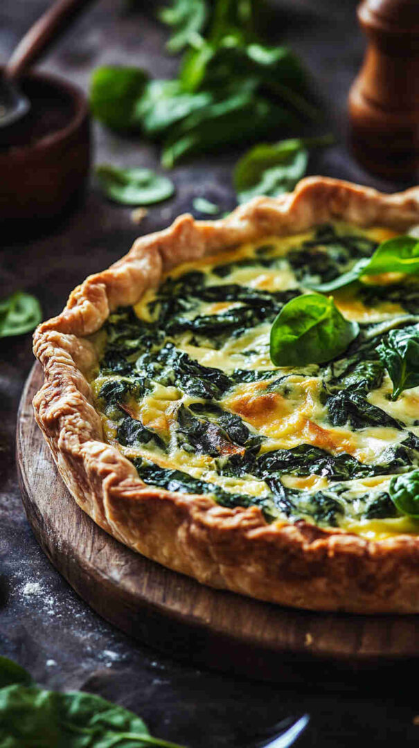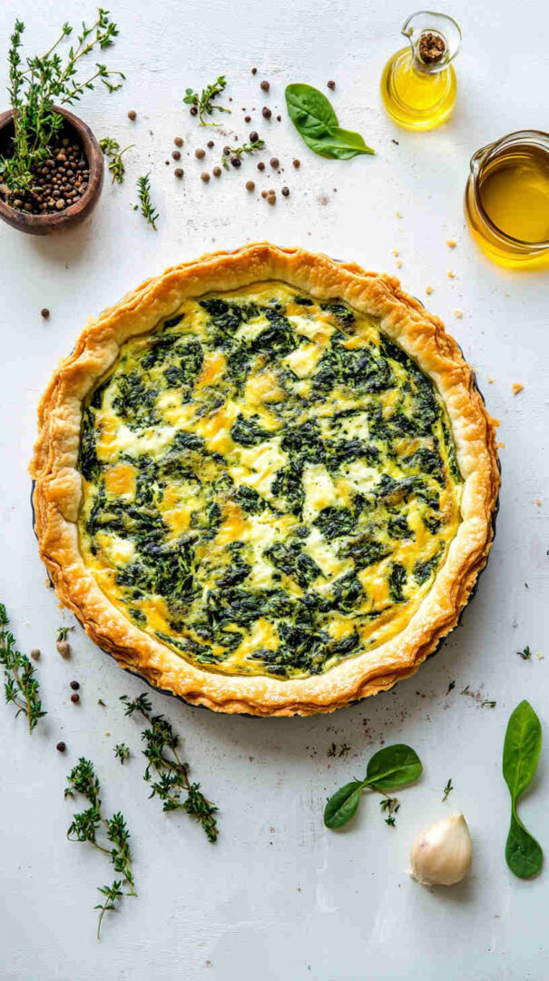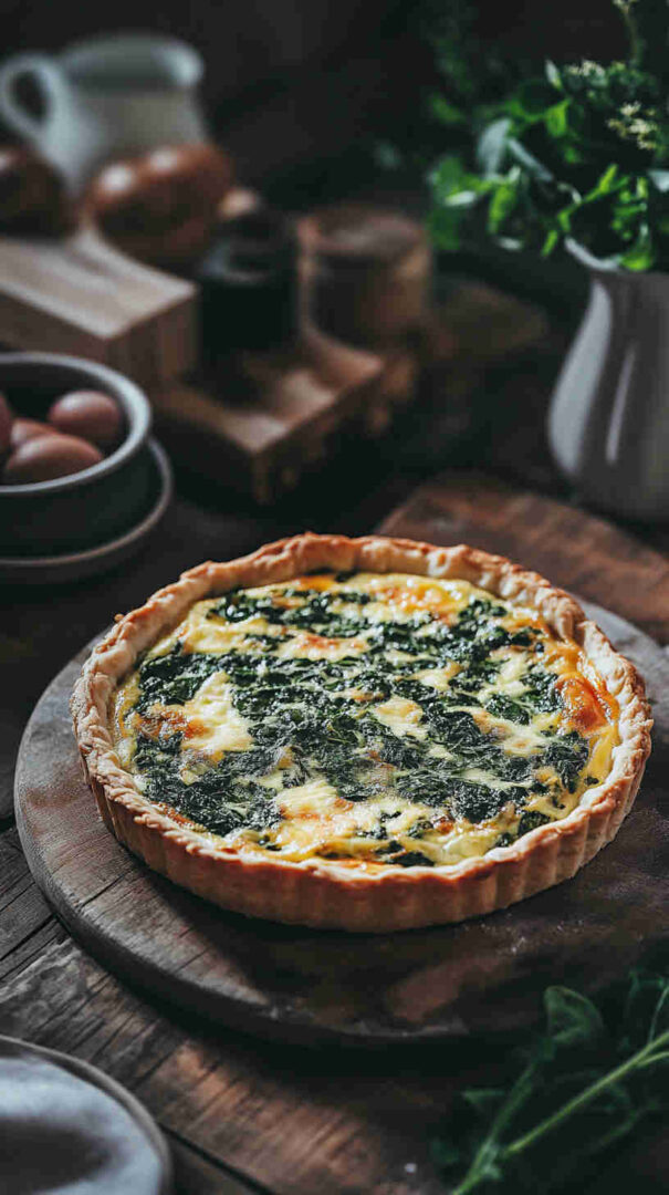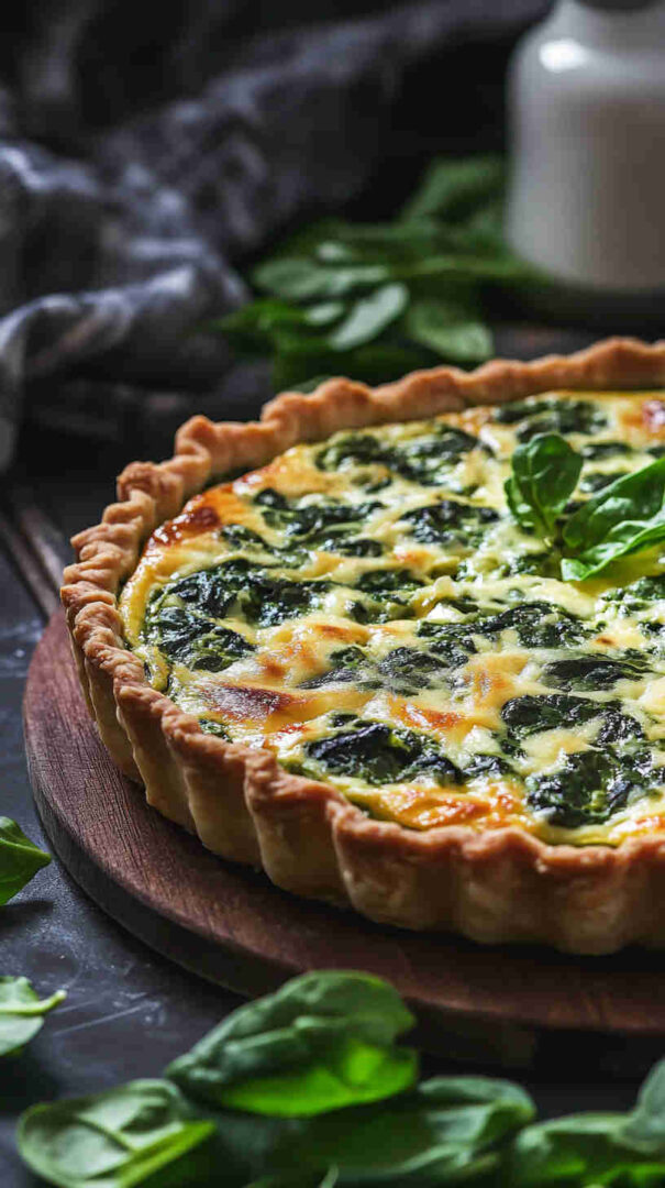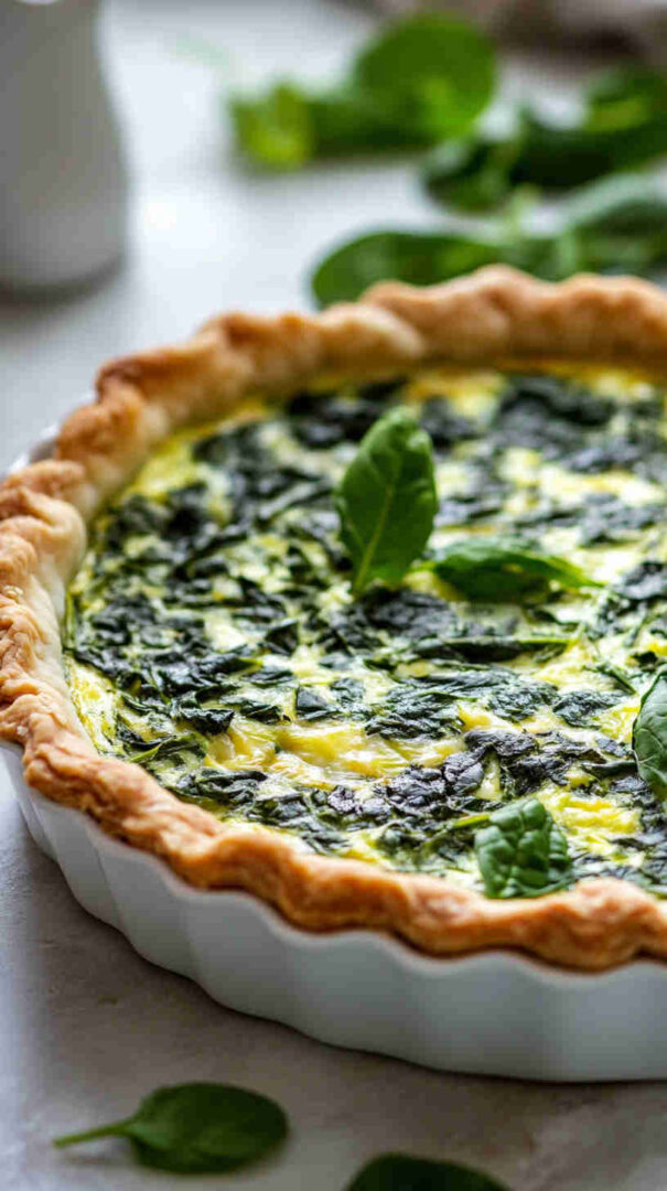 Blind-bake the crust (par-bake) for 10–12 minutes to prevent sogginess. Whisk eggs vigorously with cream/milk for the fluffiest texture. Sauté spinach and onions until moisture is mostly evaporated—wet veggies make a watery quiche.