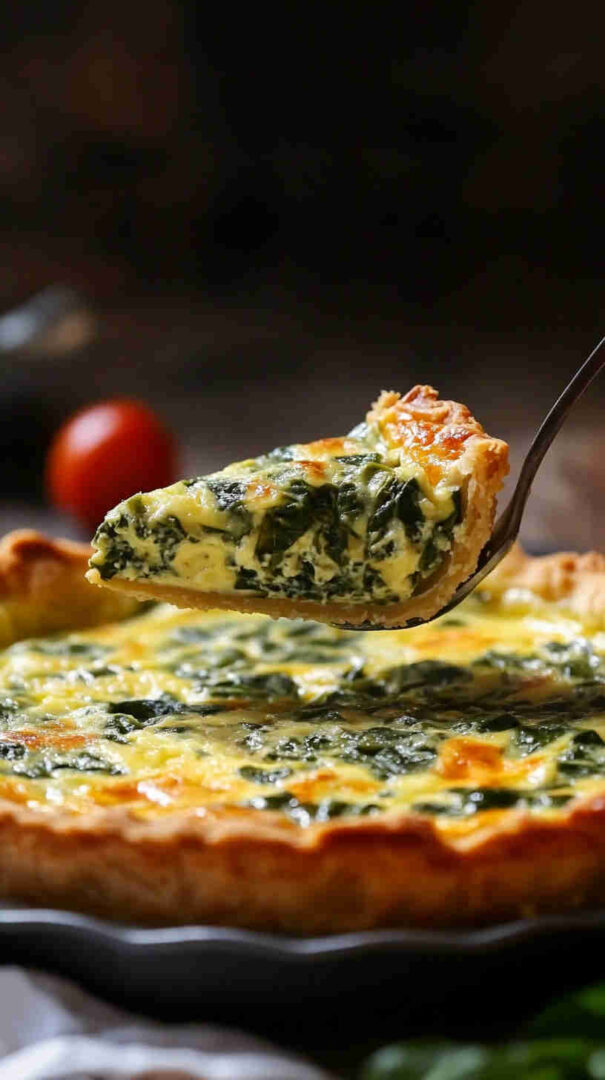 Creamy spinach-cheese quiche with tomatoes and onions—easy, elegant Italian brunch perfection!