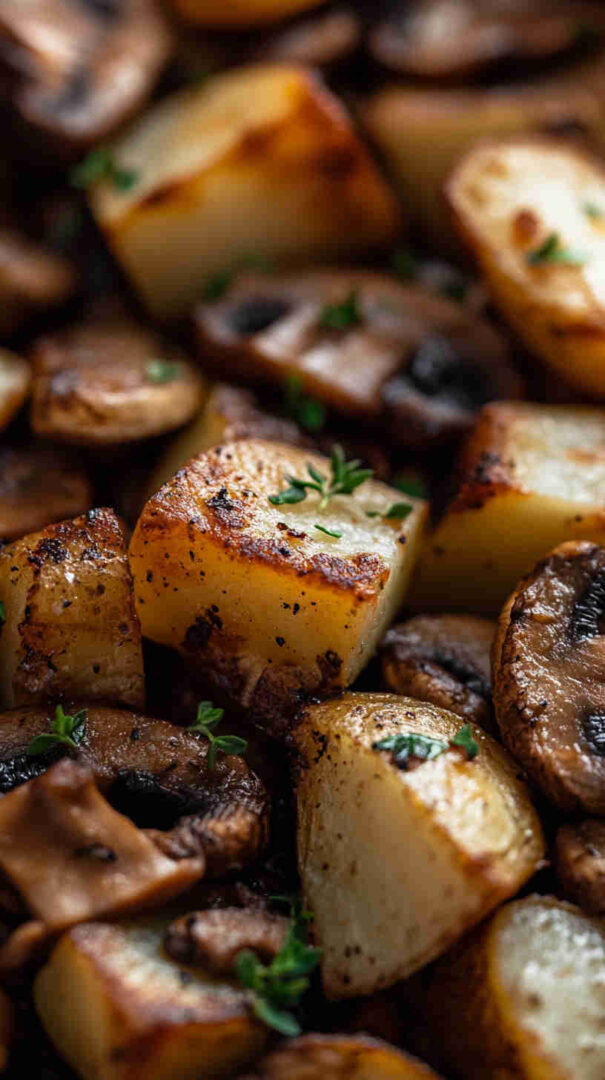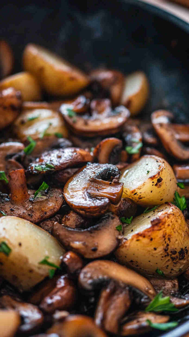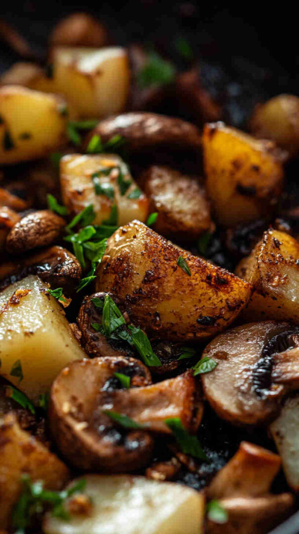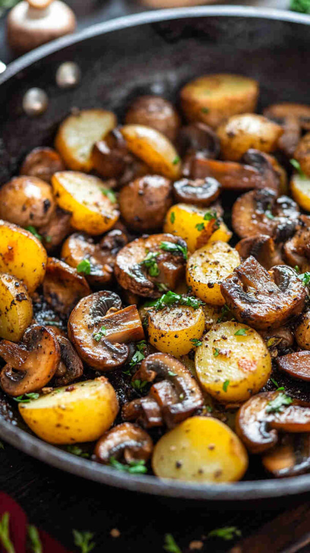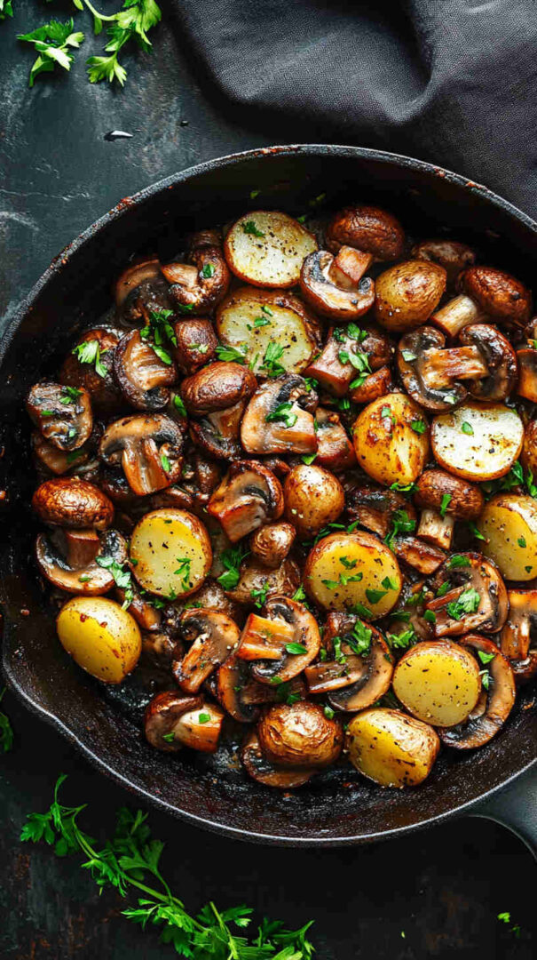 No fancy techniques, no long ingredient list, and almost no cleanup since everything cooks in one pan. It’s incredibly versatile: serve it as a main for meatless nights, a generous side with eggs or grilled chicken, or even breakfast hash-style. The contrast of textures—crispy potatoes against silky mushrooms—is addictive, and the whole thing feels cozy and homemade without any stress.