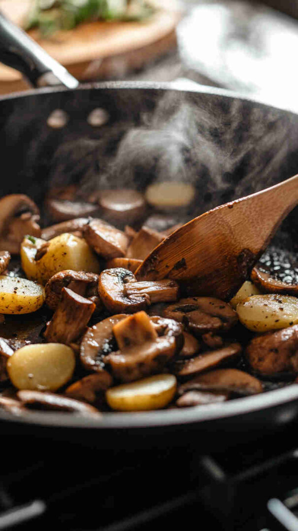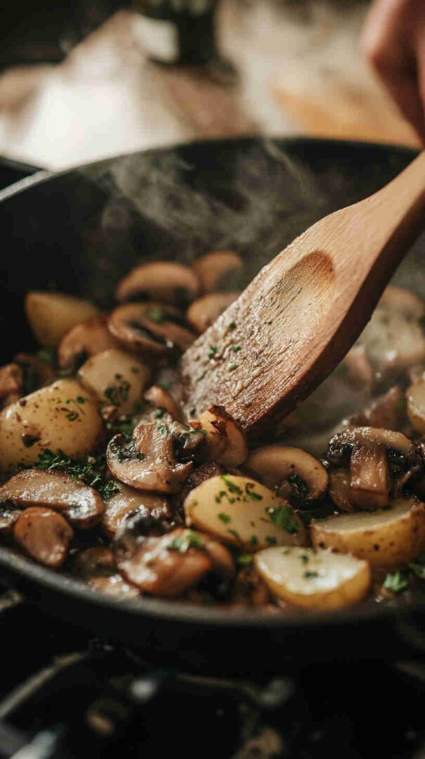- Taste and season generously at the finish—potatoes and mushrooms soak up salt and pepper beautifully.