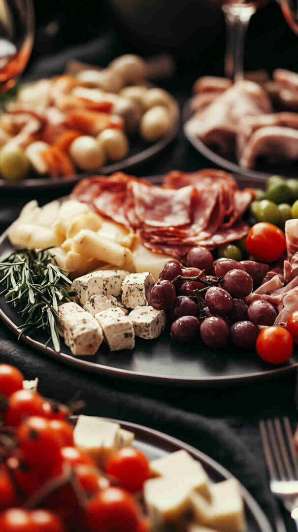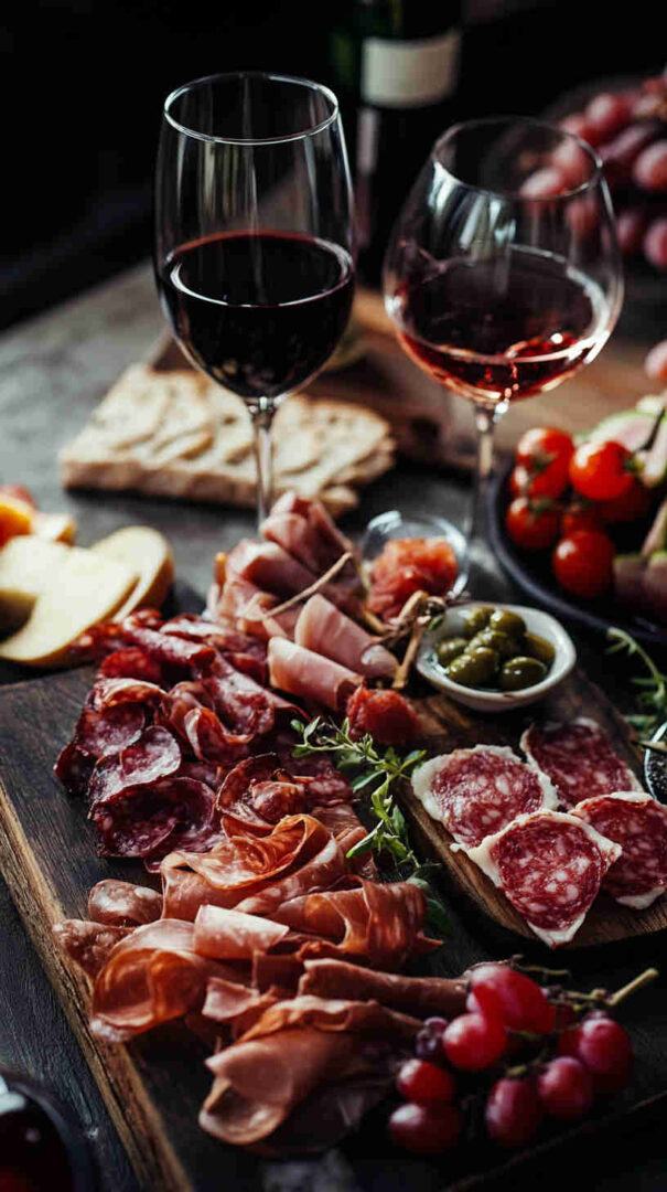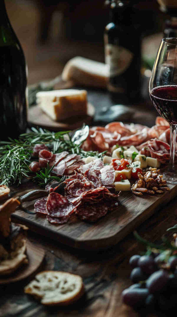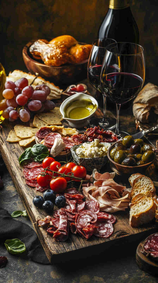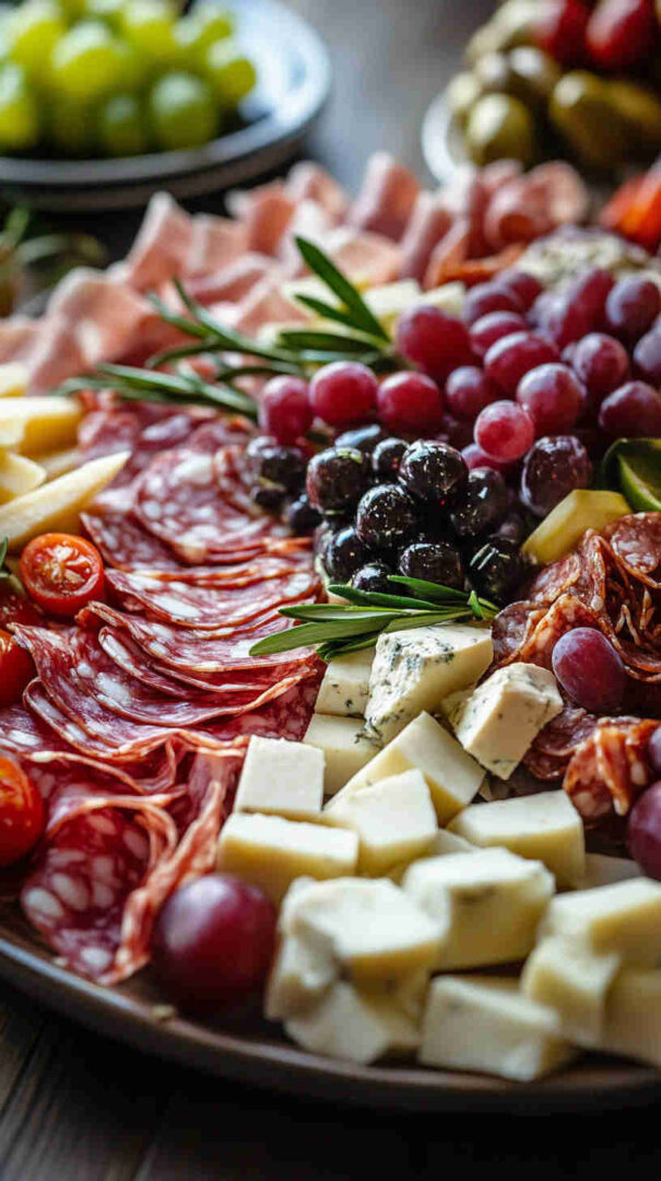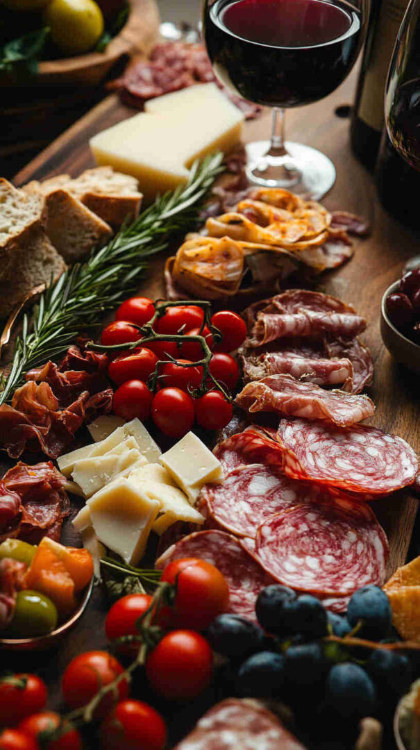 Don’t skip fresh elements: grapes, figs, or sliced pear add sweetness and color. Finish with extras like grissini, taralli, crostini, a drizzle of aged balsamic, and marcona almonds for crunch.