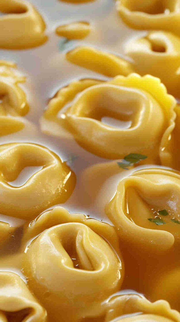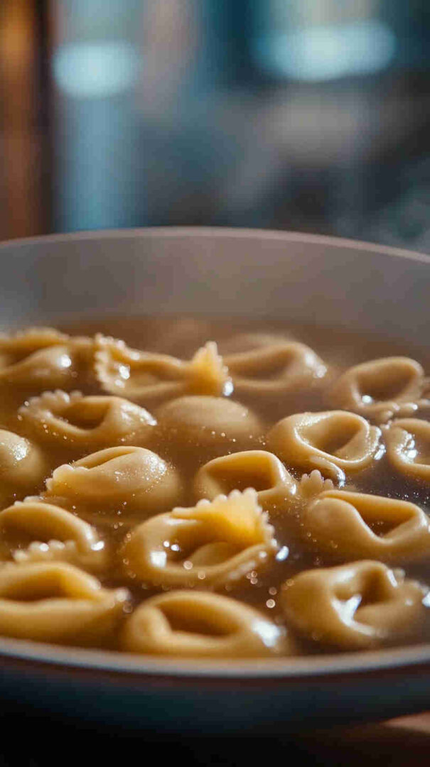 Discover the soul-warming classic of Emilia-Romagna: Tortellini in Brodo. Delicate handmade egg pasta pockets filled with a savory blend of pork, prosciutto, mortadella, and aged Parmigiano-Reggiano swim in a rich, clear meat broth.