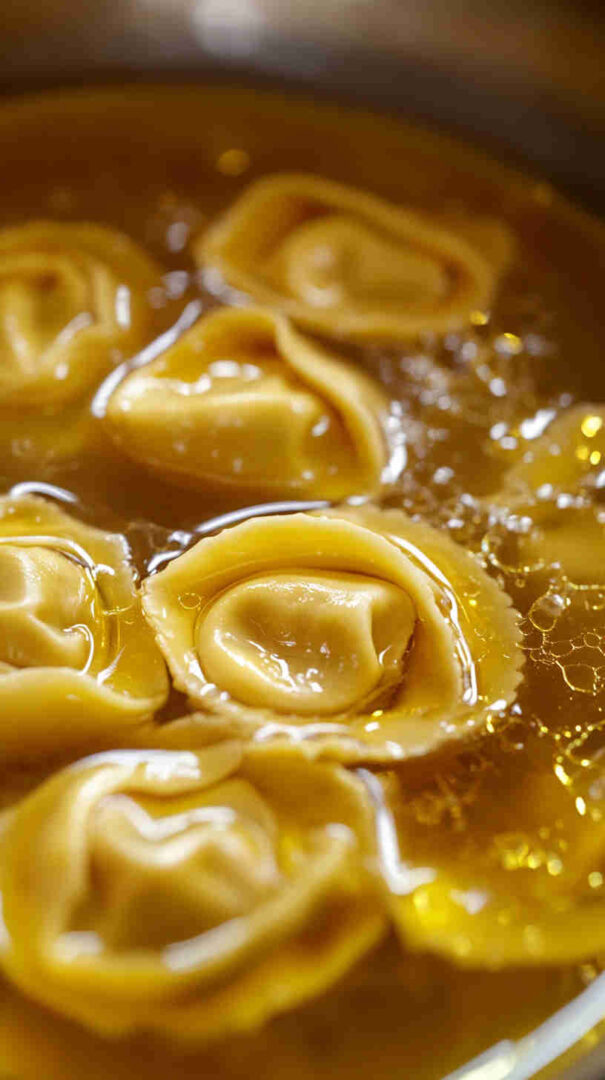- Bring it all together: Bring your strained broth to a gentle simmer. Carefully add the fresh tortellini in batches. Cook for 3-5 minutes until they float and the pasta is tender but still al dente.