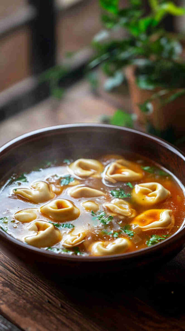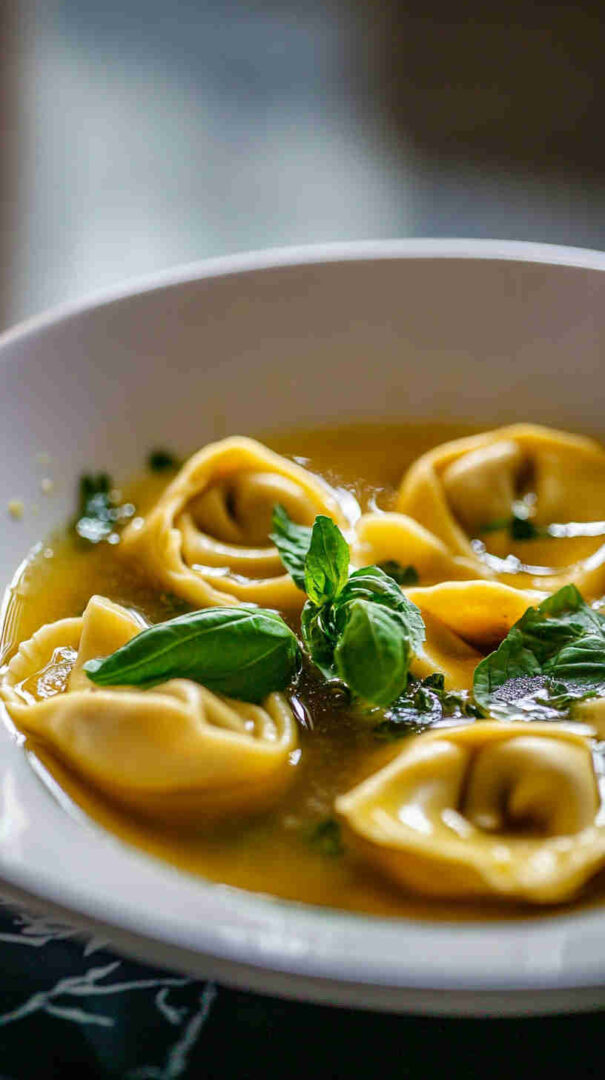 Classic Emilia-Romagna tortellini in rich meat broth—silky handmade pasta with savory filling, pure Italian comfort!