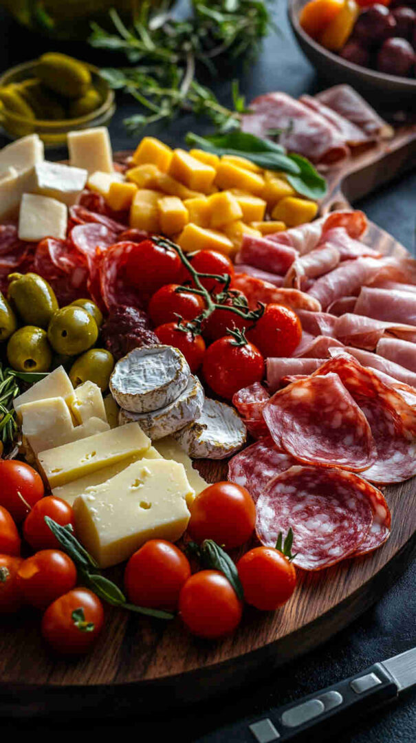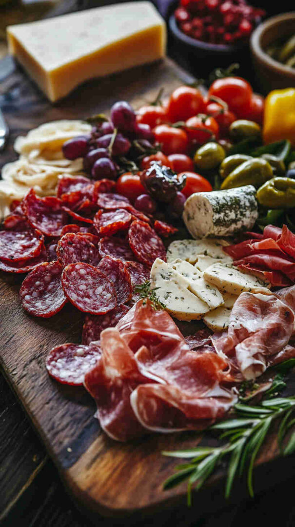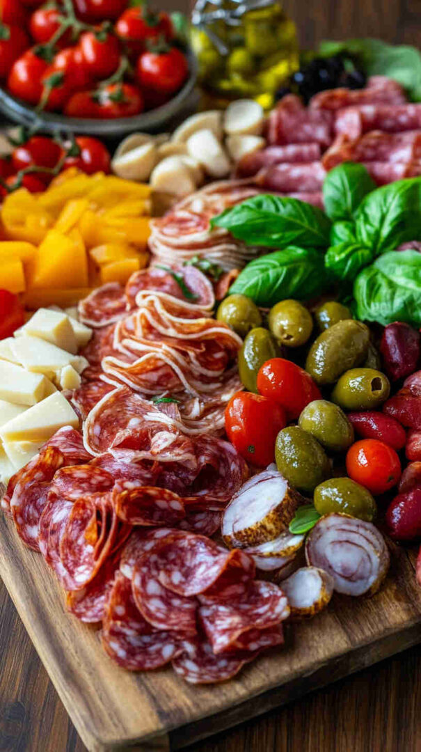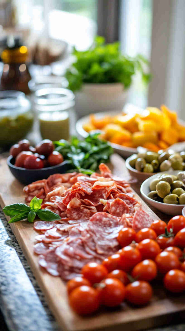 The magic of antipasto is flexibility, but quality matters. For meats, choose thin-sliced prosciutto, mild genoa salami, and mortadella with pistachios for a family-friendly mix. Skip spicy soppressata if kids are sensitive to heat.