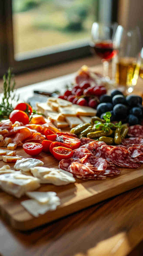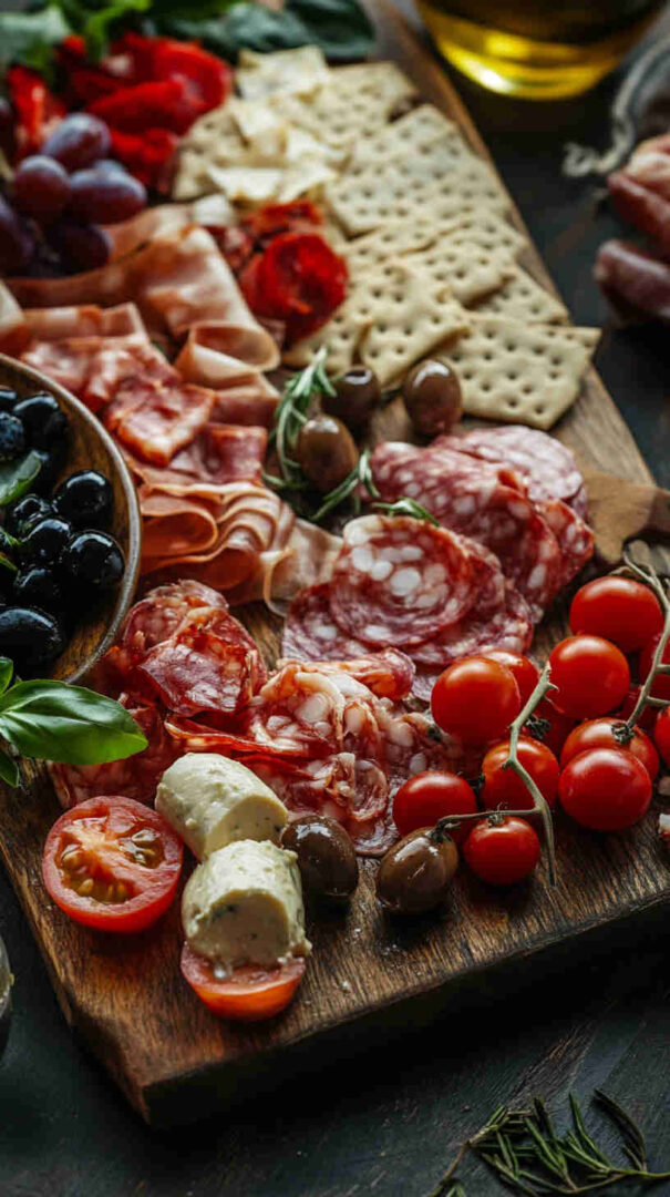 Kids enjoy picking their favorites like mild cheese cubes, sweet grapes, and breadsticks, while adults can dive into prosciutto, marinated artichokes, and sharp provolone. It scales up or down effortlessly, works as an appetizer or a light dinner, and looks restaurant-beautiful with minimal effort.