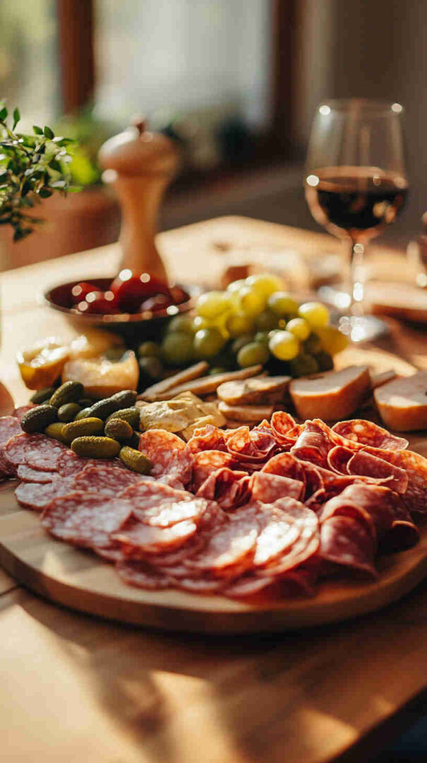 In winter, include warm elements like toasted garlic bread or baked ricotta with honey on the side. If someone doesn’t like olives, try marinated lupini beans or cornichons for that briny bite.