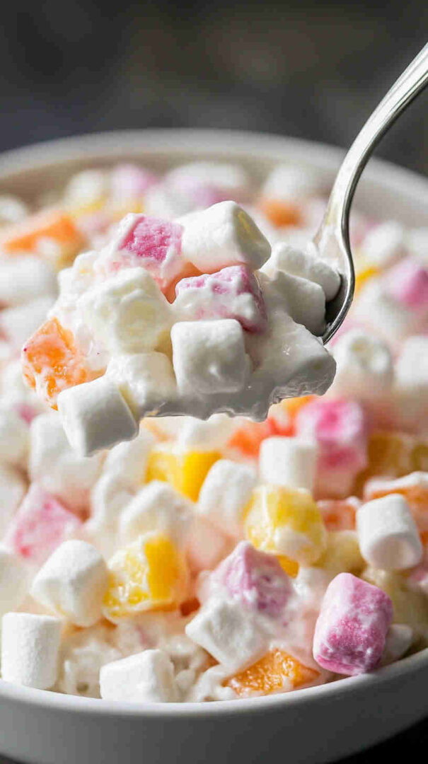 - Cover the bowl tightly with plastic wrap or a lid and pop it in the fridge for at least 4-6 hours (overnight makes it dreamy as flavors meld and marshmallows soften). Scoop into pretty bowls, garnish with an extra marshmallow or fruit piece if you like, and enjoy the happy, effortless deliciousness!