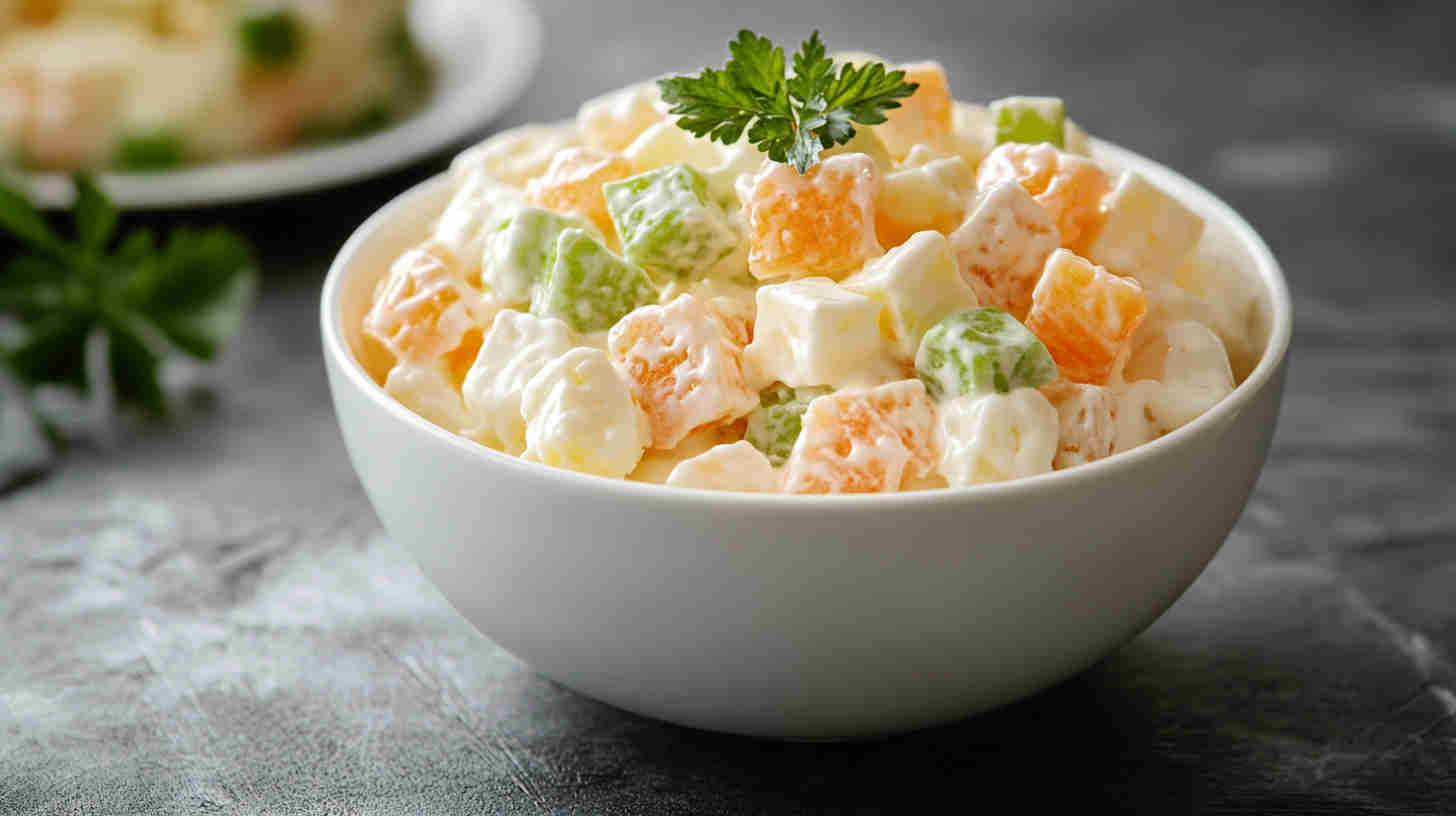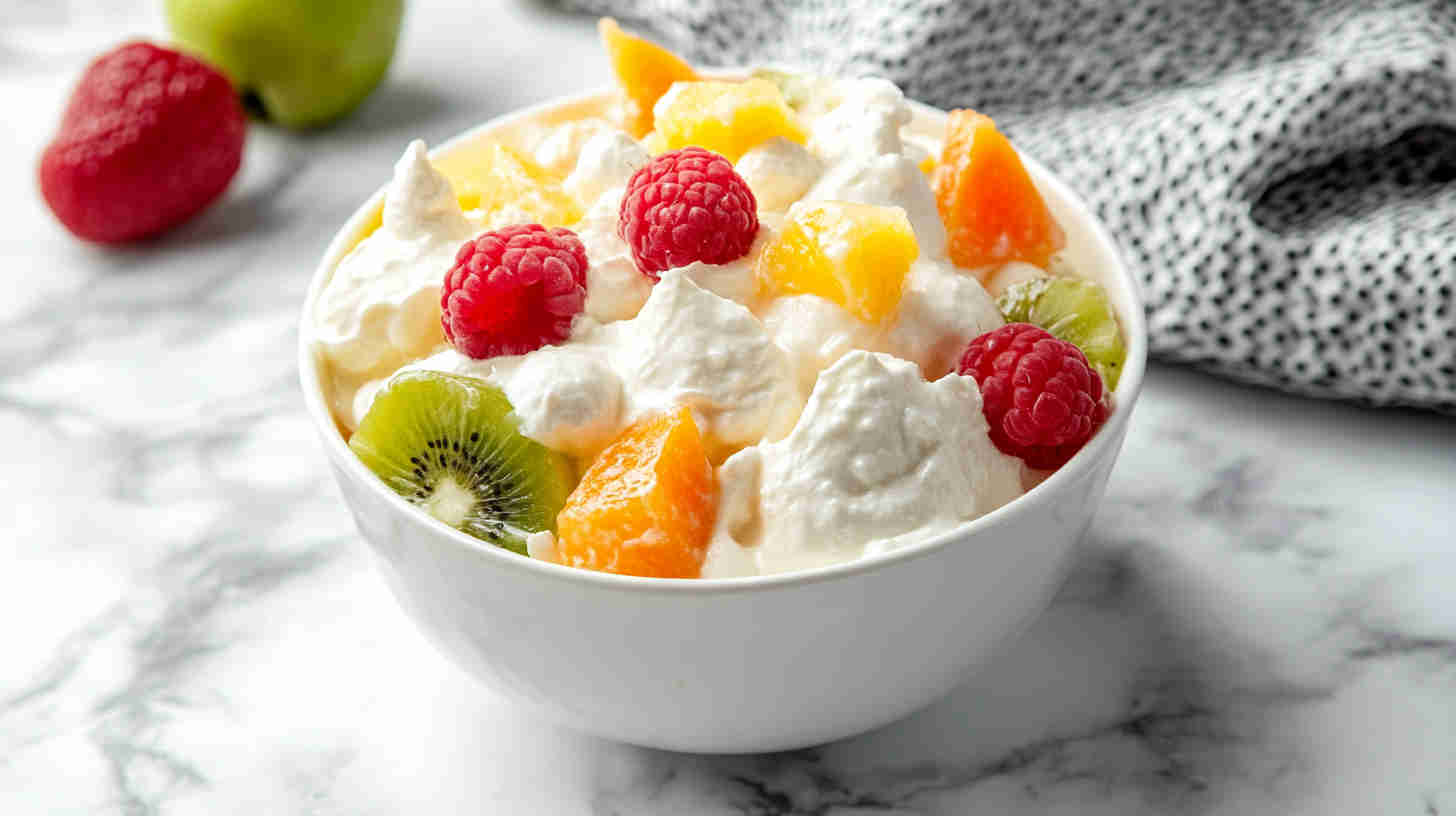 Drain the canned fruits as thoroughly as possible (use a colander and press gently with a spoon) to prevent any watery texture – this keeps the salad thick and creamy. Fold gently with a spatula rather than stirring vigorously to maintain fluffiness and avoid breaking up the fruit pieces.