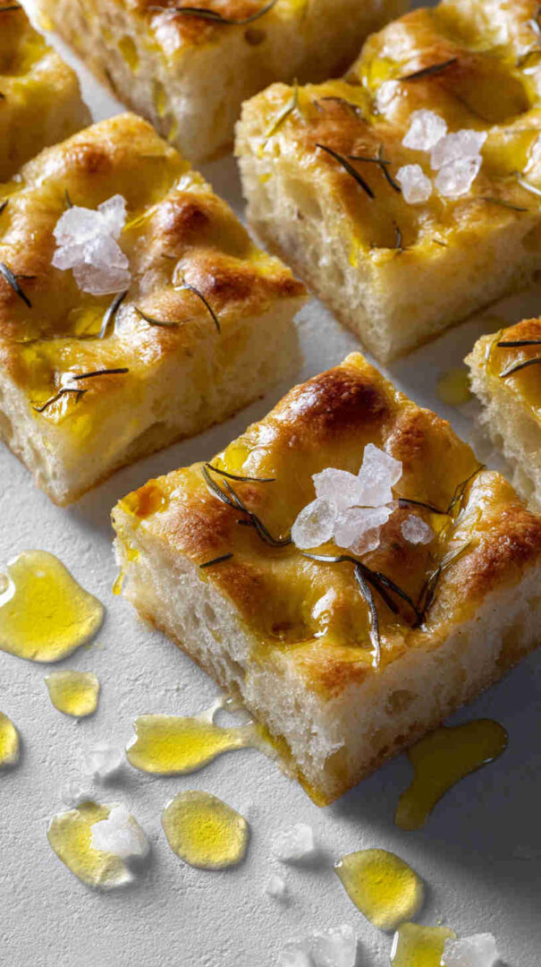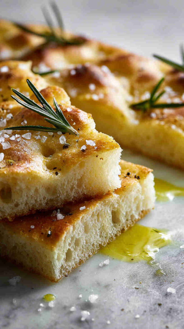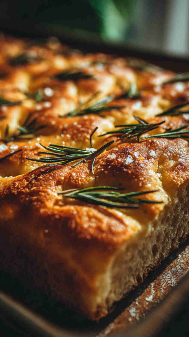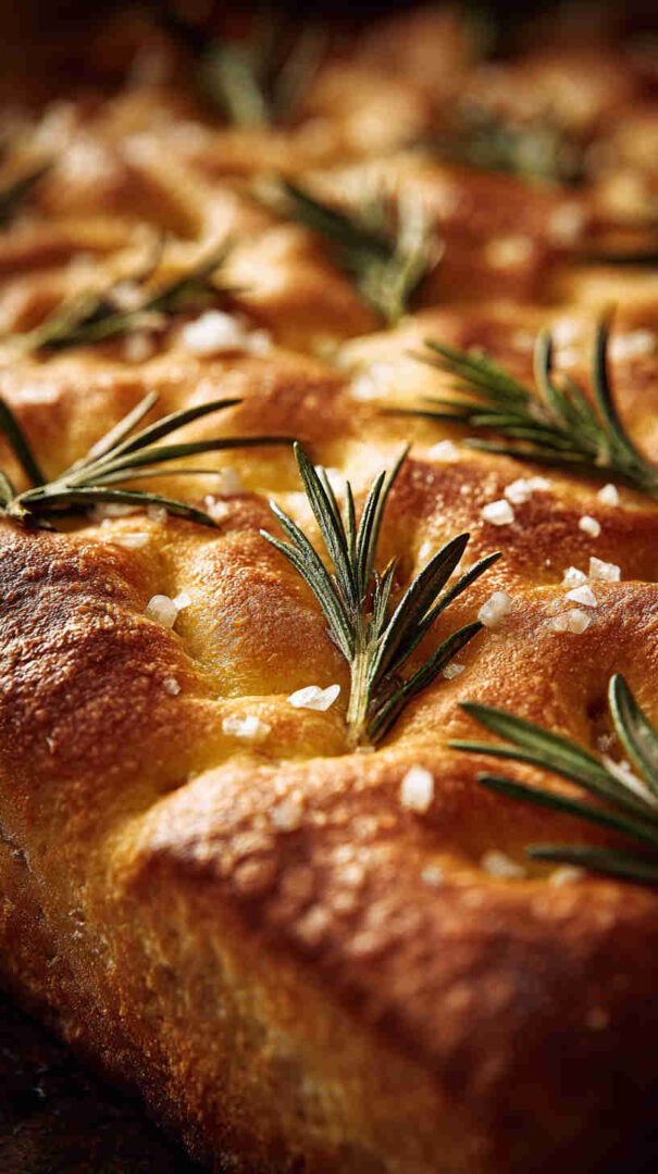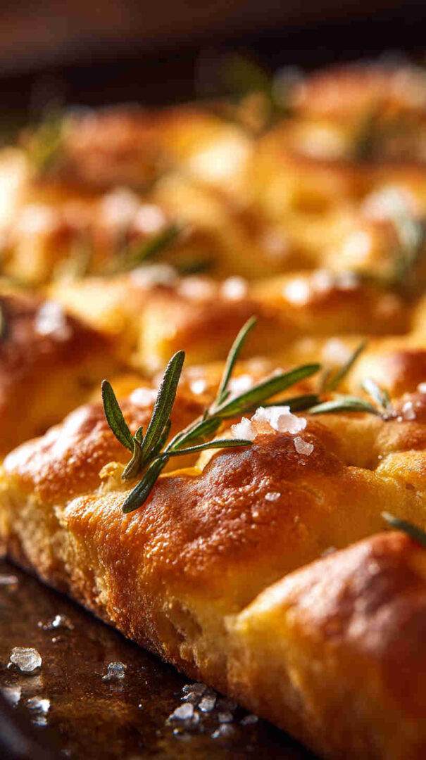 Golden, dimpled focaccia with olive oil, fresh rosemary, and flaky sea salt—crispy, airy, and irresistibly flavorful.