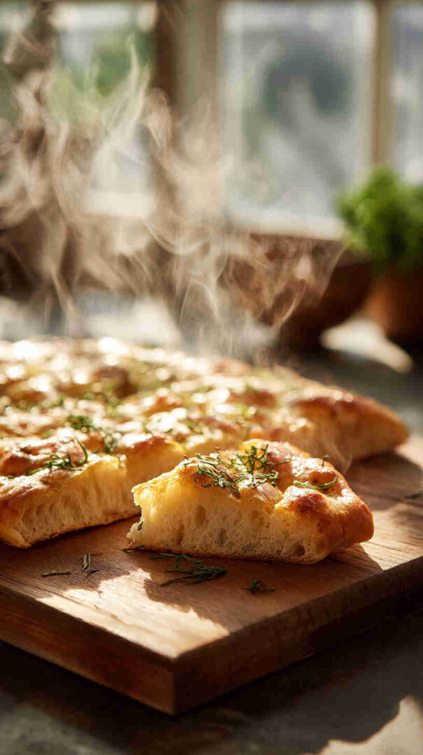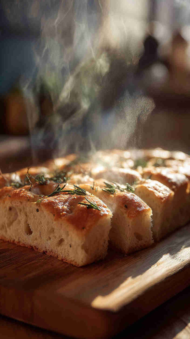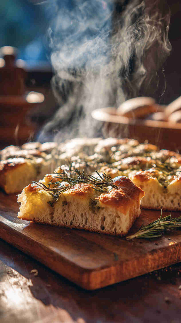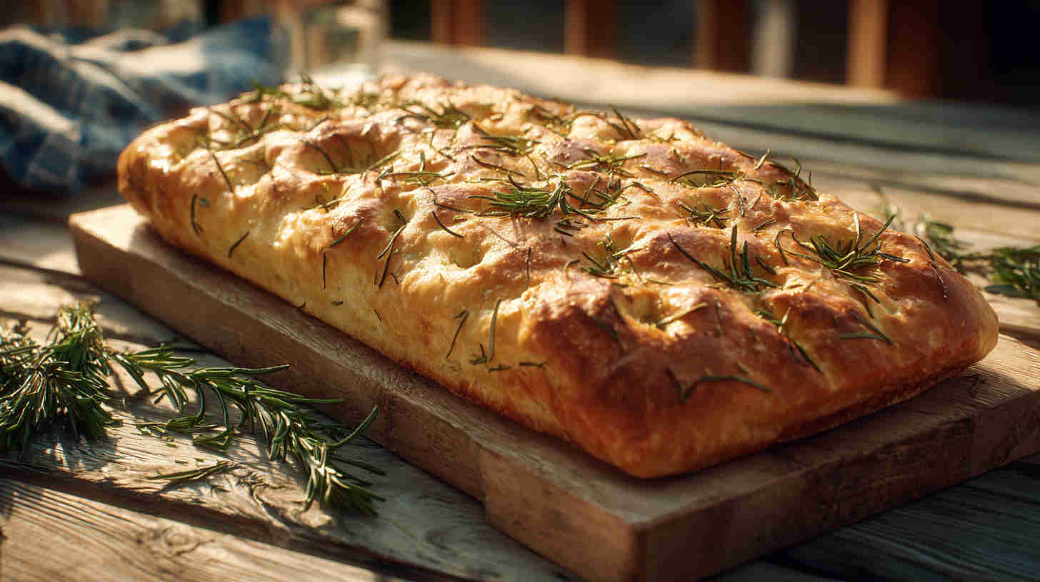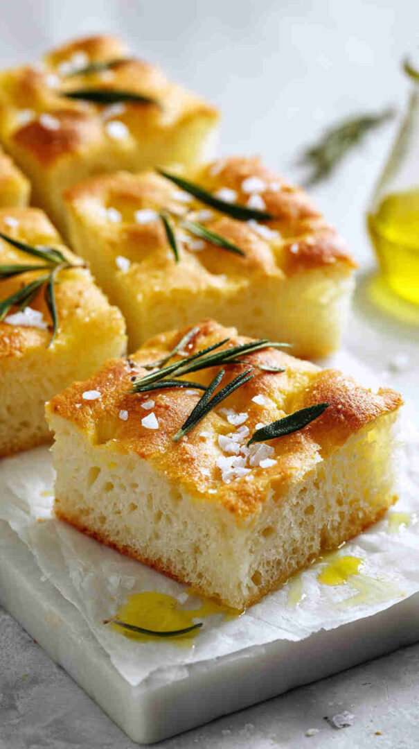 Golden, dimpled focaccia with olive oil, fresh rosemary, and flaky sea salt—crispy, airy, and irresistibly flavorful.