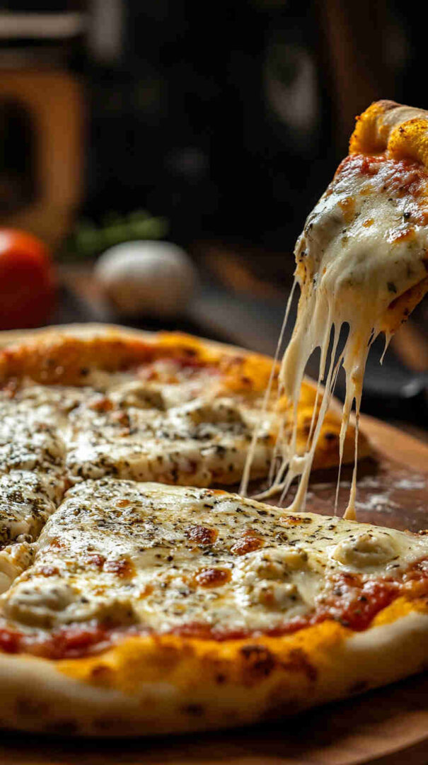 Indulge in this heavenly Four-Cheese Italian Pizza that transforms the timeless Neapolitan Margherita into a decadent masterpiece. Featuring a light, airy homemade dough topped with vibrant San Marzano tomato sauce, creamy mozzarella, nutty Parmesan, mild fontina, tangy gorgonzola, fresh basil, and a luxurious drizzle of extra virgin olive oil—pure cheesy bliss in every bite!