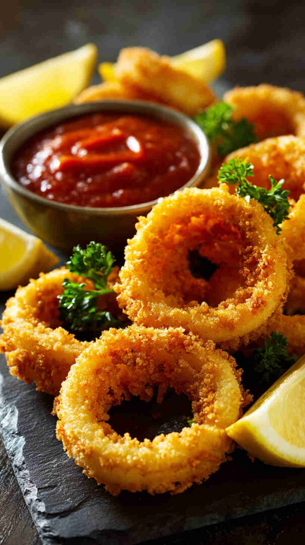 - Air-fryer version: Lightly spray coated calamari and air-fry at 400°F for 8-10 minutes, shaking halfway (less authentic but healthier).