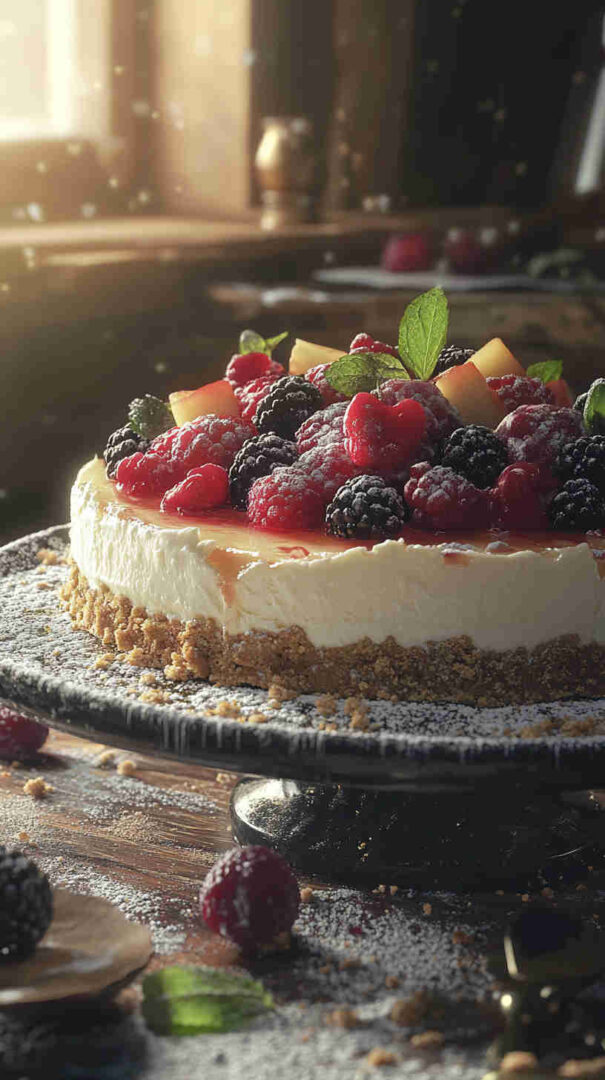 For longer storage, freeze individual slices wrapped in plastic wrap and foil for up to 2 months; thaw overnight in the fridge before serving (texture remains creamy). Avoid freezing the whole cake as the crust can soften. Keep toppings separate if using fresh fruit to prevent sogginess.