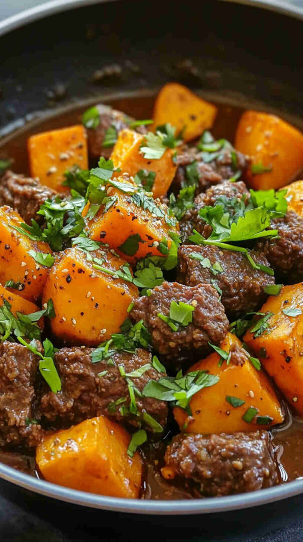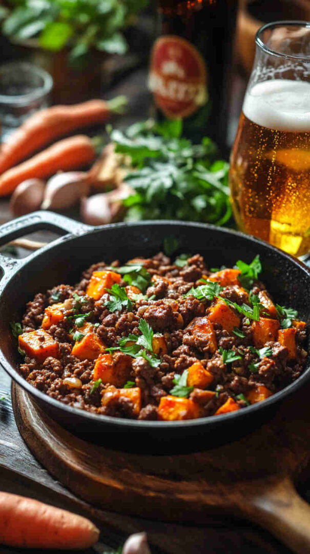 This vibrant one-pan Ground Beef and Sweet Potato Skillet combines lean ground beef with tender diced sweet potatoes, bell peppers, onions, garlic, and bold spices like cumin and chili powder. Simmered with fire-roasted tomatoes for depth, it’s a nutritious, flavorful dinner ready in about 35 minutes—healthy comfort food at its easiest!